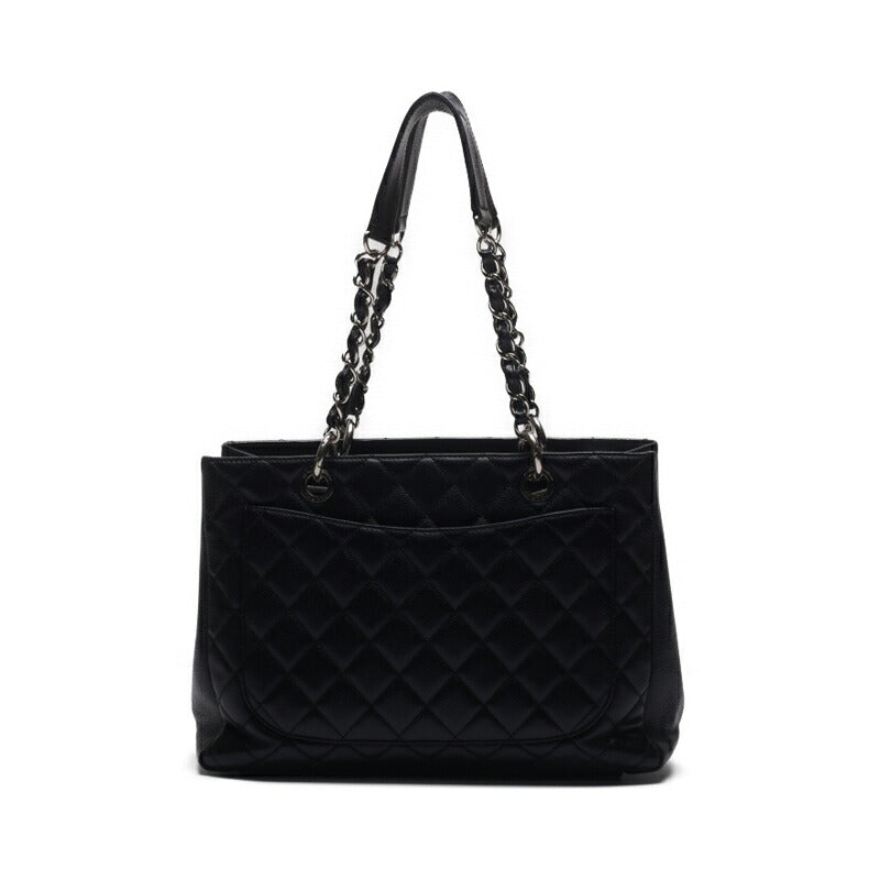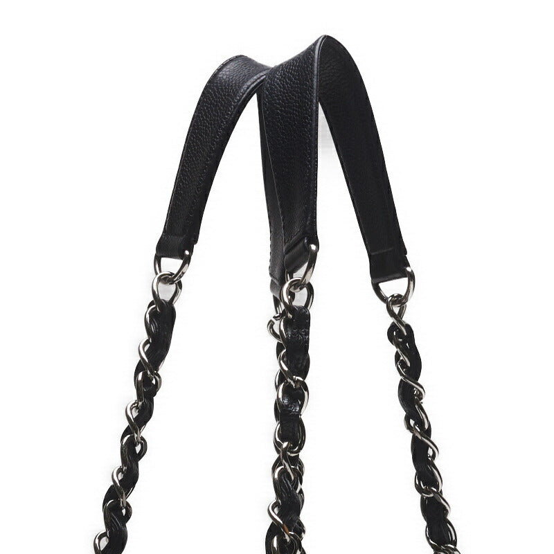 Pre-Owned Chain Tote Shoulder Bag, Caviskin, Black, Silver-Tone Hardware, Pre-Owned