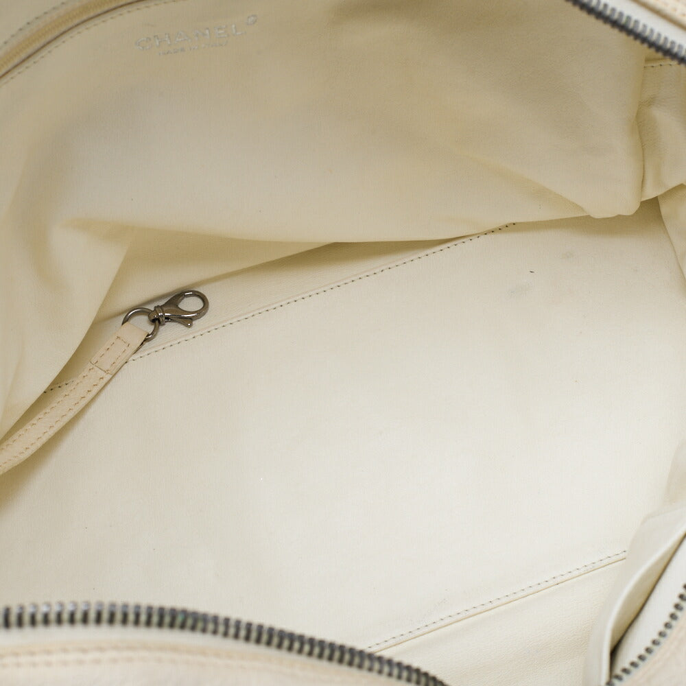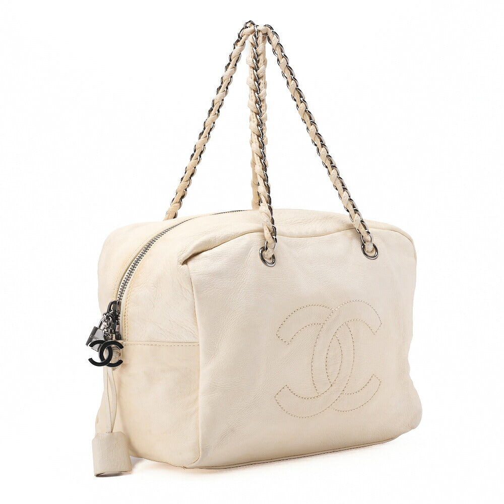 Pre-Owned Tote Bag Coco Mark, Leather, White, Silver-Tone Hardware, Pre-Owned