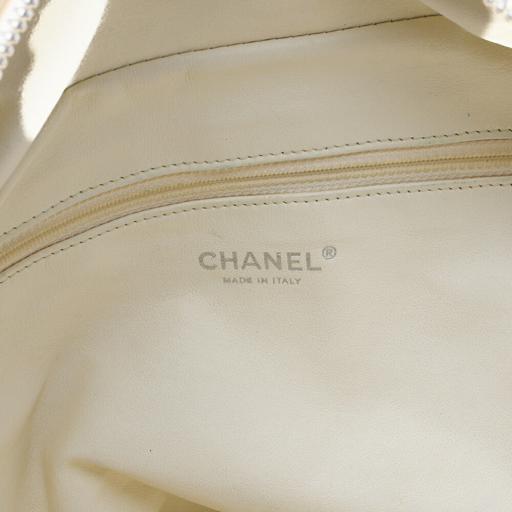 Introducing the CHANEL Coco Mark Boston Bag in luxurious leather, a stunning piece in pristine white with elegant silver metal fittings. This tote bag embodies sophistication and timeless style, making it the perfect accessory for the modern woman.