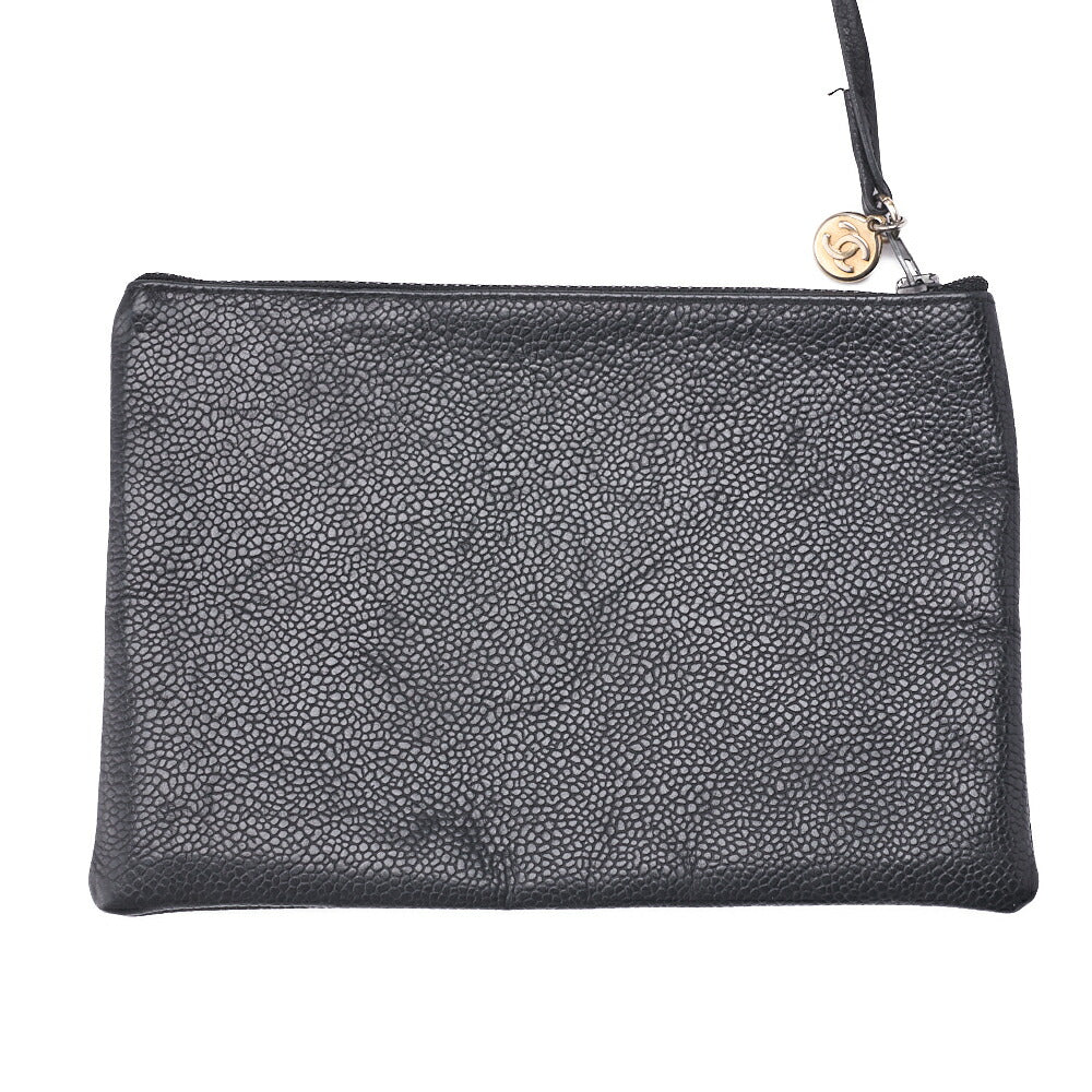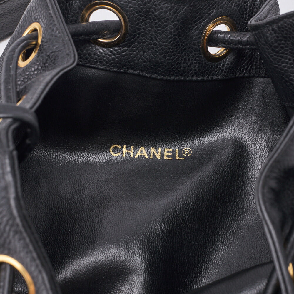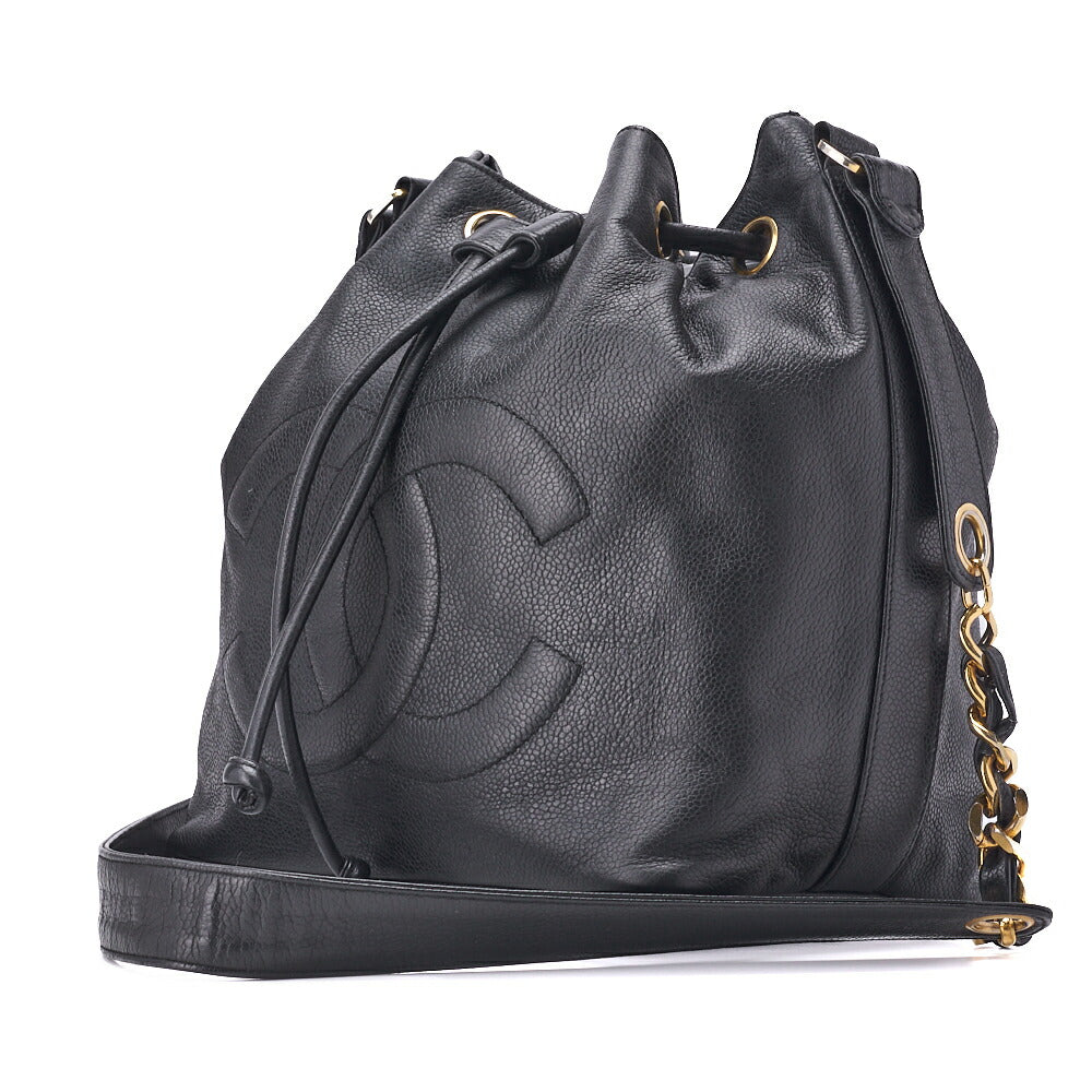 Pre-Owned Shoulder Bag, Drawstring Type, Caviar Skin, Black, Gold-Tone Hardware, Pre-Owned