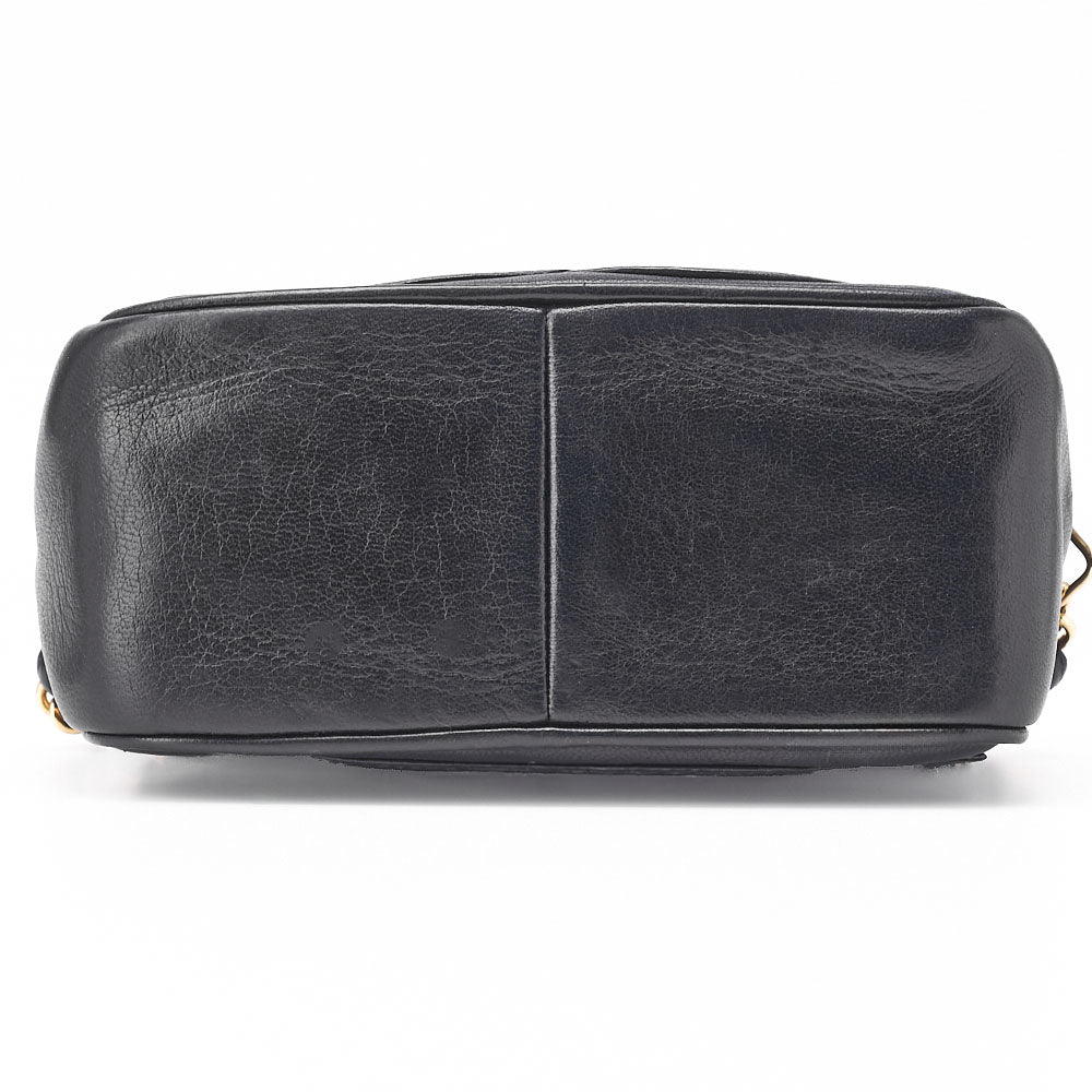 With approximate dimensions of W18cm x H12.5cm x D7cm and a shoulder length of about 98cm, this bag is perfectly sized for both daily use and special occasions. The eye-catching gold fittings beautifully contrast with the sleek black lambskin, adding a touch of elegance to your outfits.