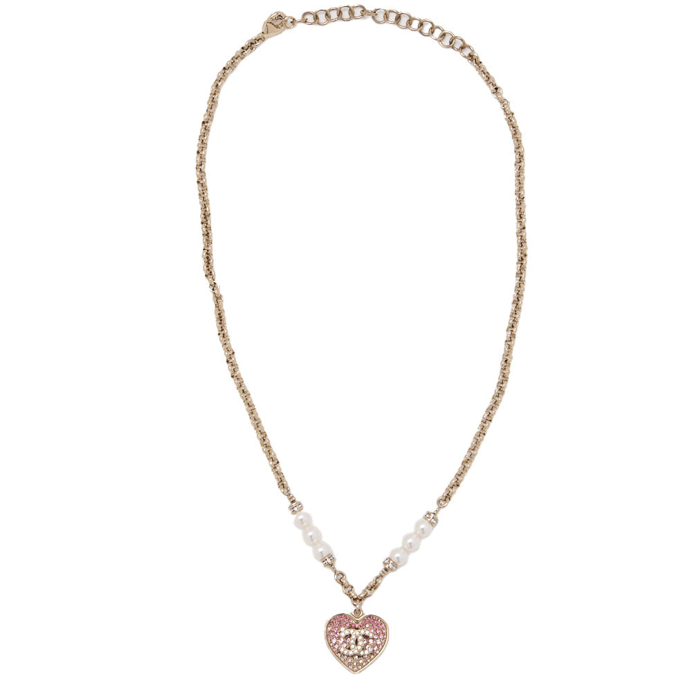 Pre-Owned Necklace, Coco Mark Heart, Gold Plated, Pink, Gold-Tone Hardware, Pre-Owned