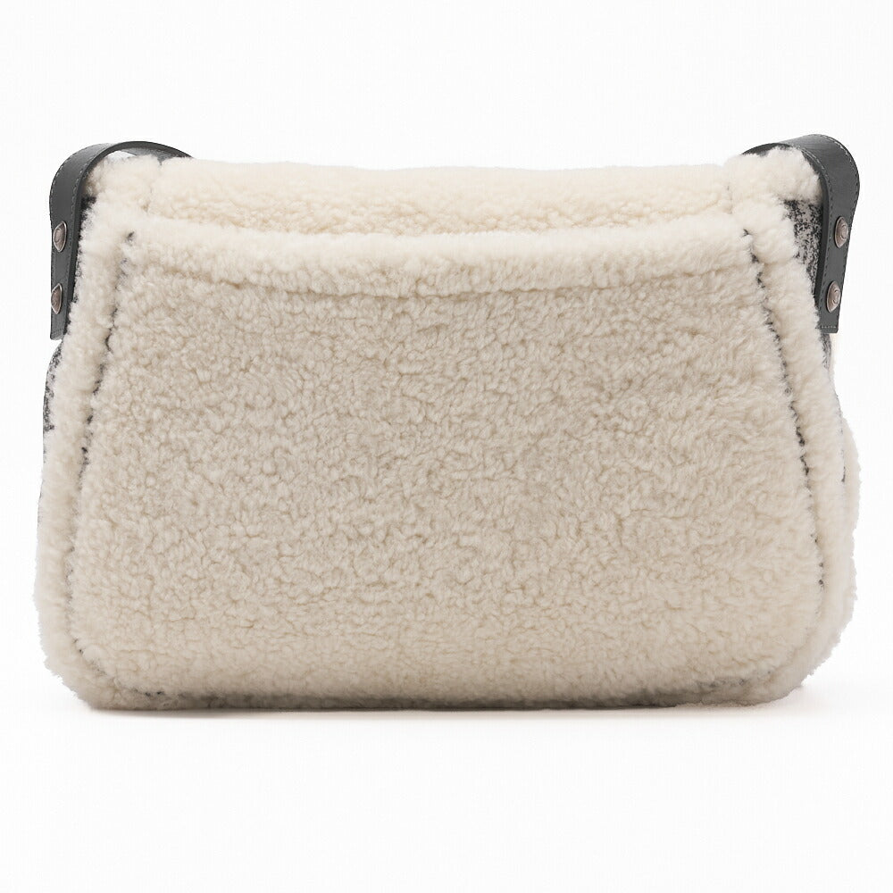 Pre-Owned Shoulder Bag Coco Mark Mouton Fur White Gray Silver-Tone Hardware Pre-Owned