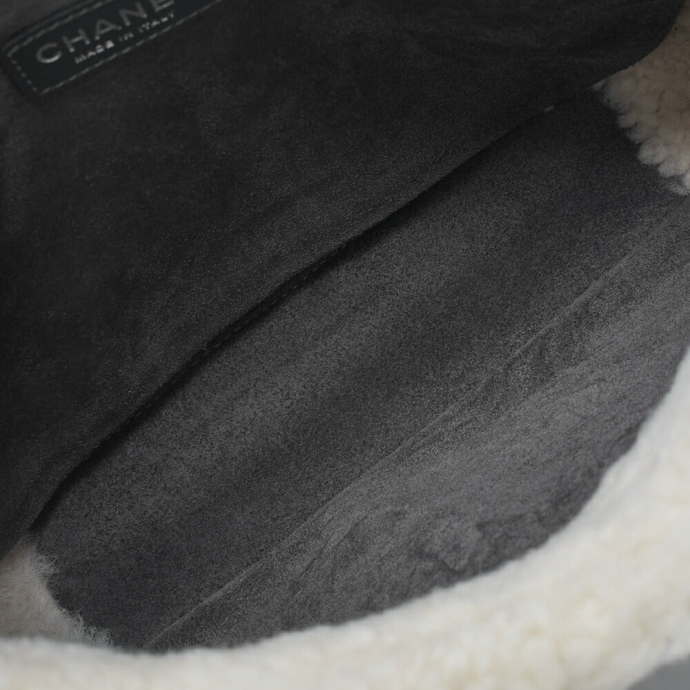 Elevate your accessory collection with the exquisite CHANEL Coco Mark Mouton Shoulder Bag in a stunning blend of White and Gray featuring elegant silver fittings. This luxurious bag is crafted from soft, sumptuous mouton fur, making it not just a fashion statement but also a versatile companion for any occasion.