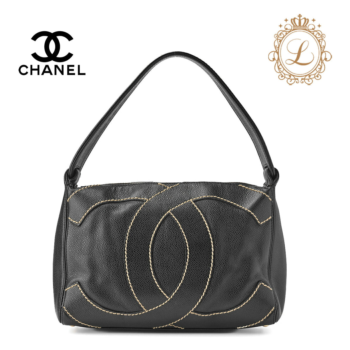 Pre-Owned Shoulder Bag, Coco Mark One, Caviar Skin, Black, Gold-Tone Hardware, Pre-Owned