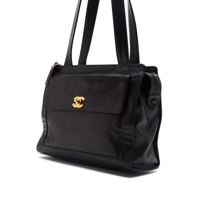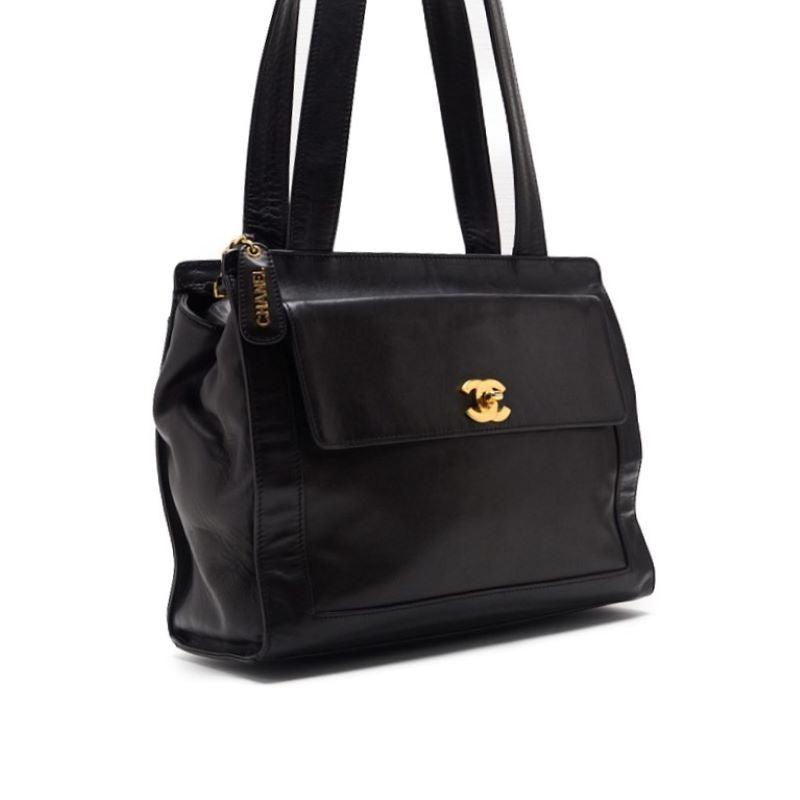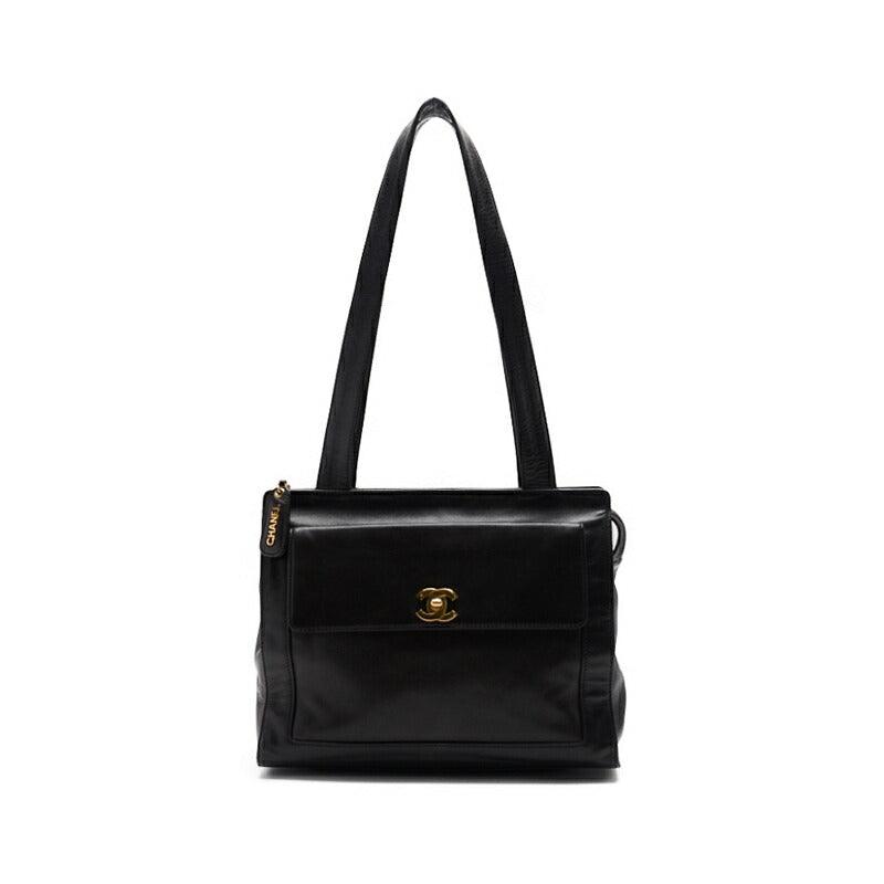Pre-Owned Shoulder Bag, Coco Mark Outside Flap, Lambskin, Black, Gold-Tone Hardware, Pre-Owned