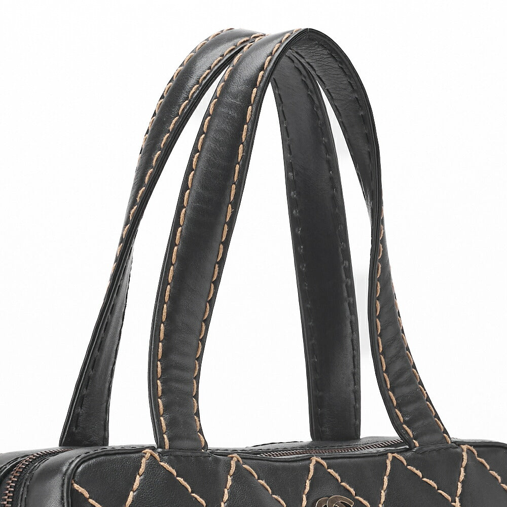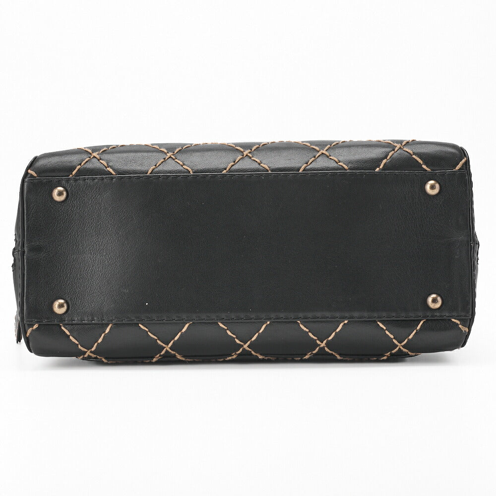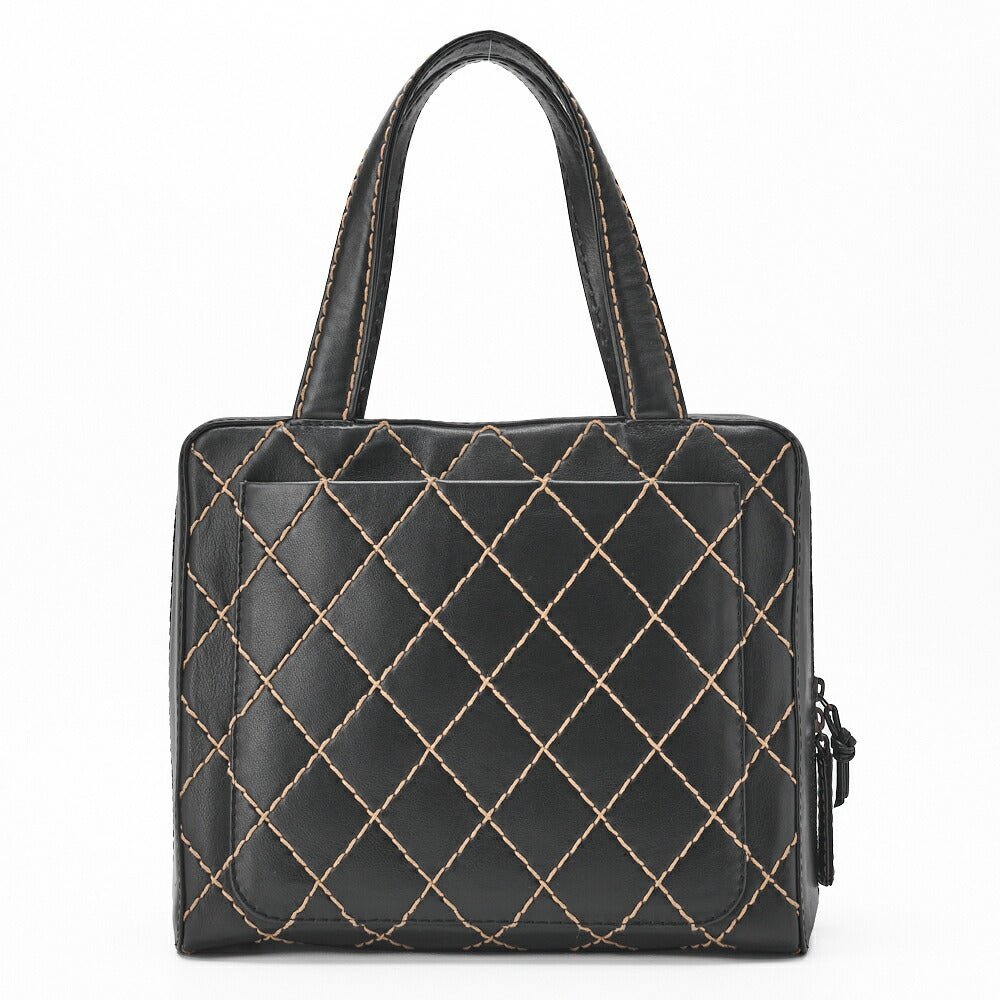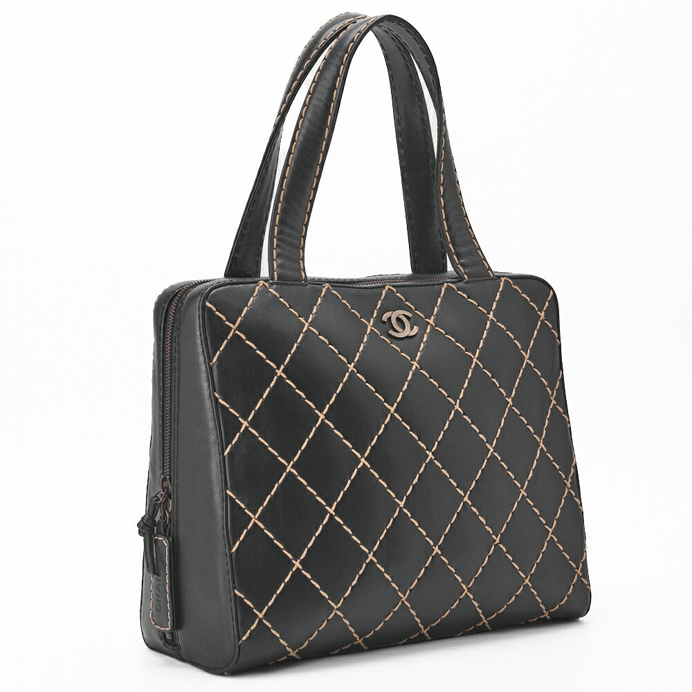 Pre-Owned Tote Bag Coco Mark Wild Stitch Calfskin Black Silver-Tone Hardware Pre-Owned