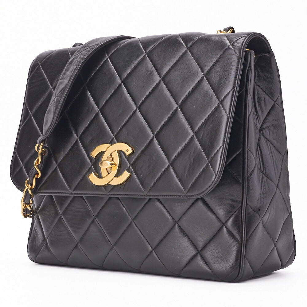 Pre-Owned Shoulder Bag, Deca Matelasse, Coco, Lambskin, Black, Gold-Tone Hardware, Pre-Owned