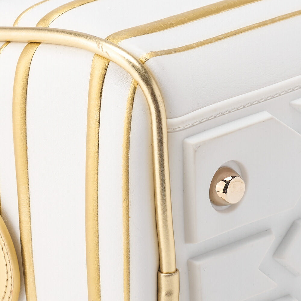 Elevate your accessory game with the Dior Dior Dior 2WAY Boston Bag, a stunning fusion of elegance and functionality. Crafted from premium leather and rubber, this luxurious handbag features a chic gold and white aesthetic that makes it a perfect addition to any wardrobe.