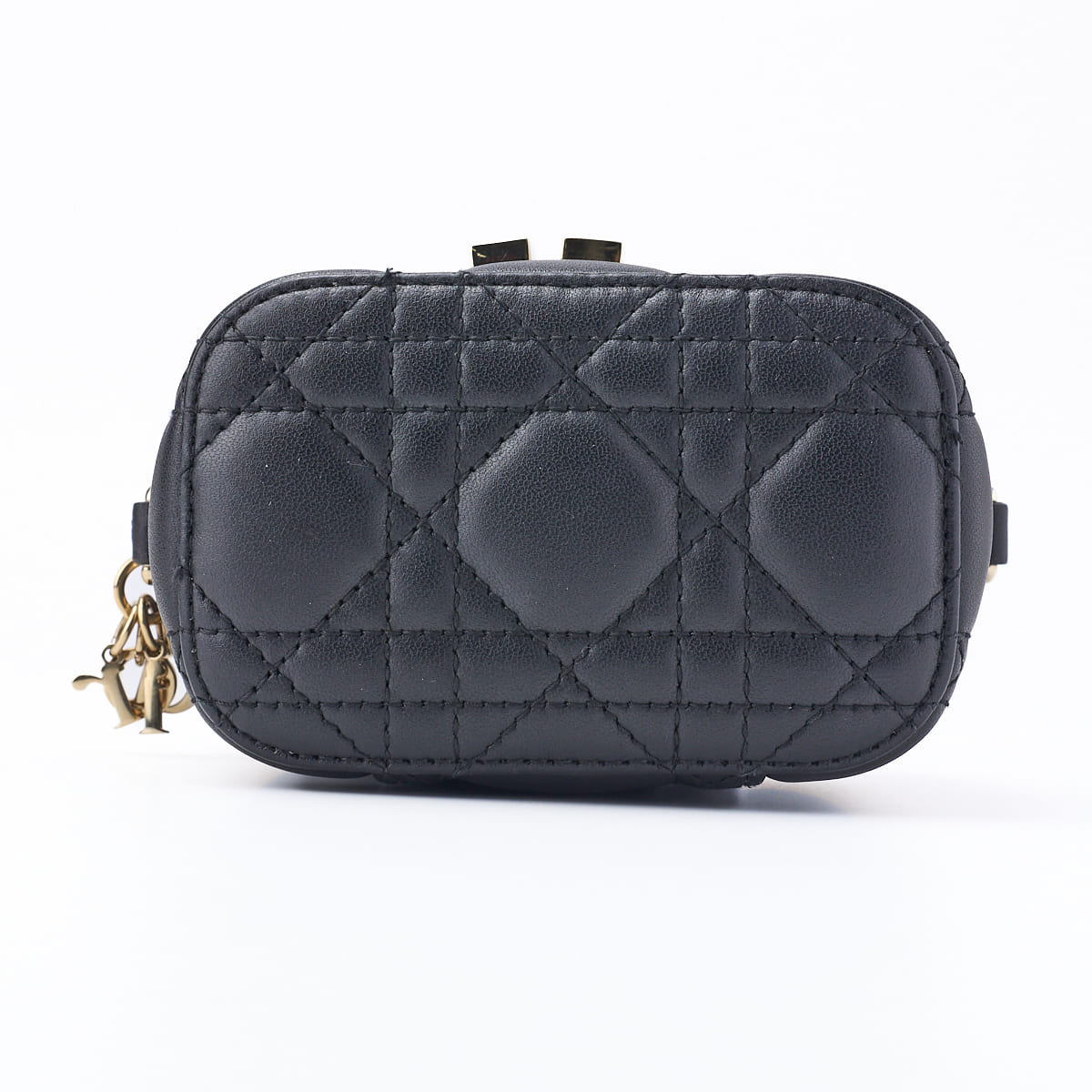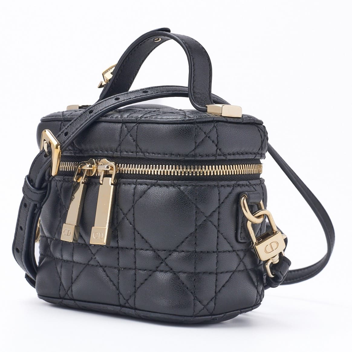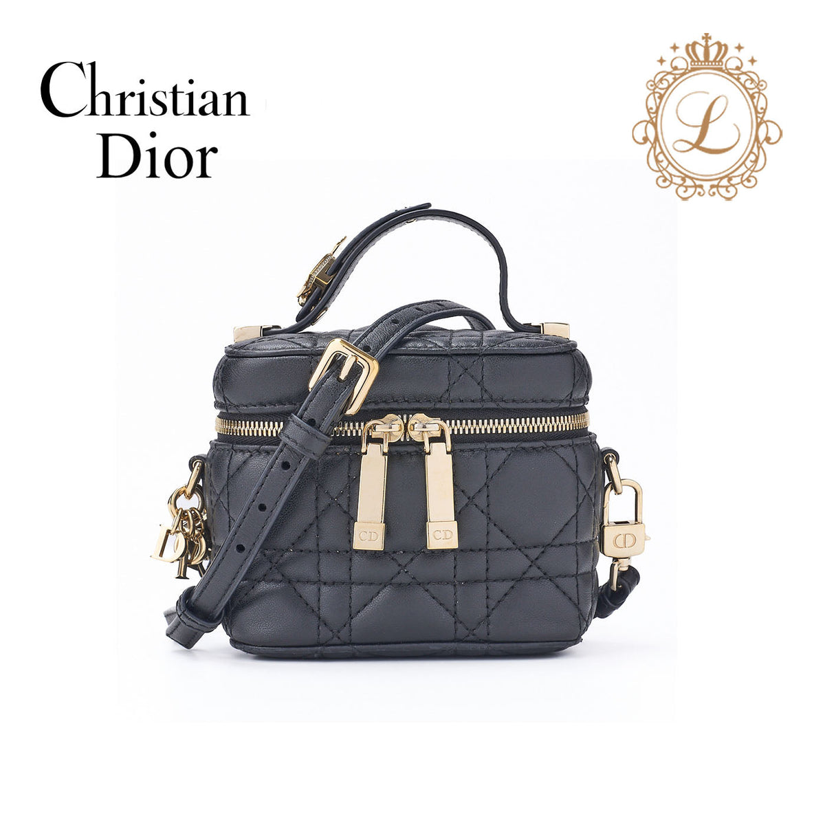 Elevate your accessory game with the Dior Dior Lady Dior Vanity Cannage 2WAY Shoulder Bag, a stunning piece crafted from luxurious lambskin in a timeless black color, accented with elegant gold fittings. This exquisite handbag is designed for versatility and style, making it a must-have for any fashion-forward woman.