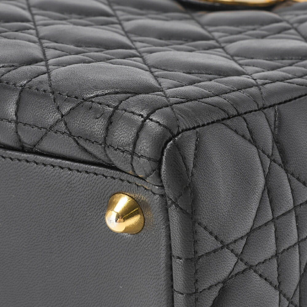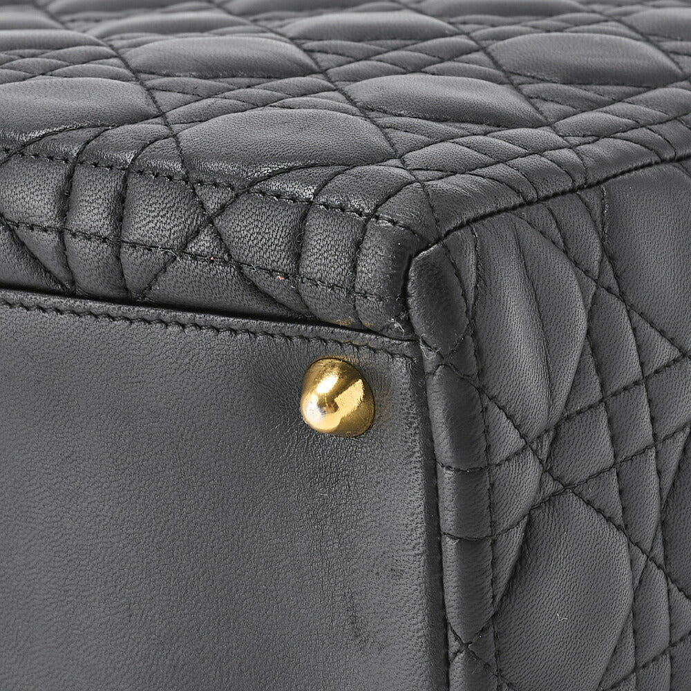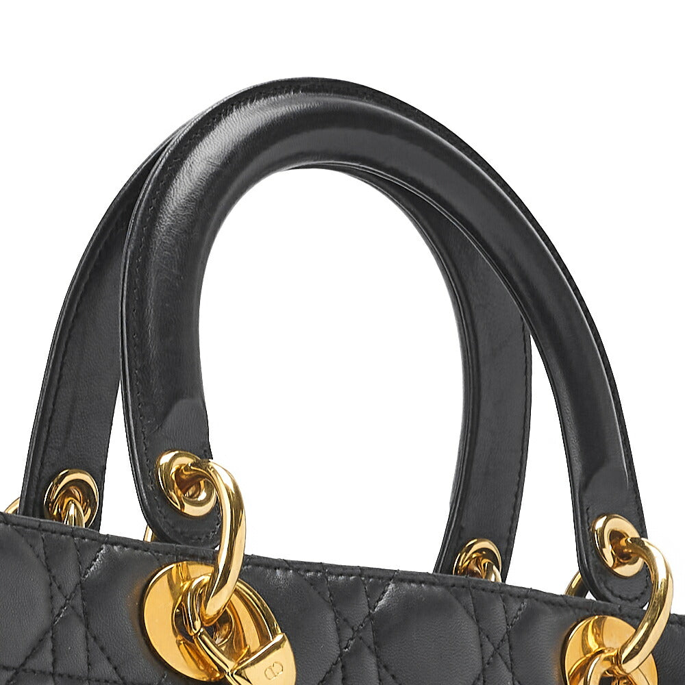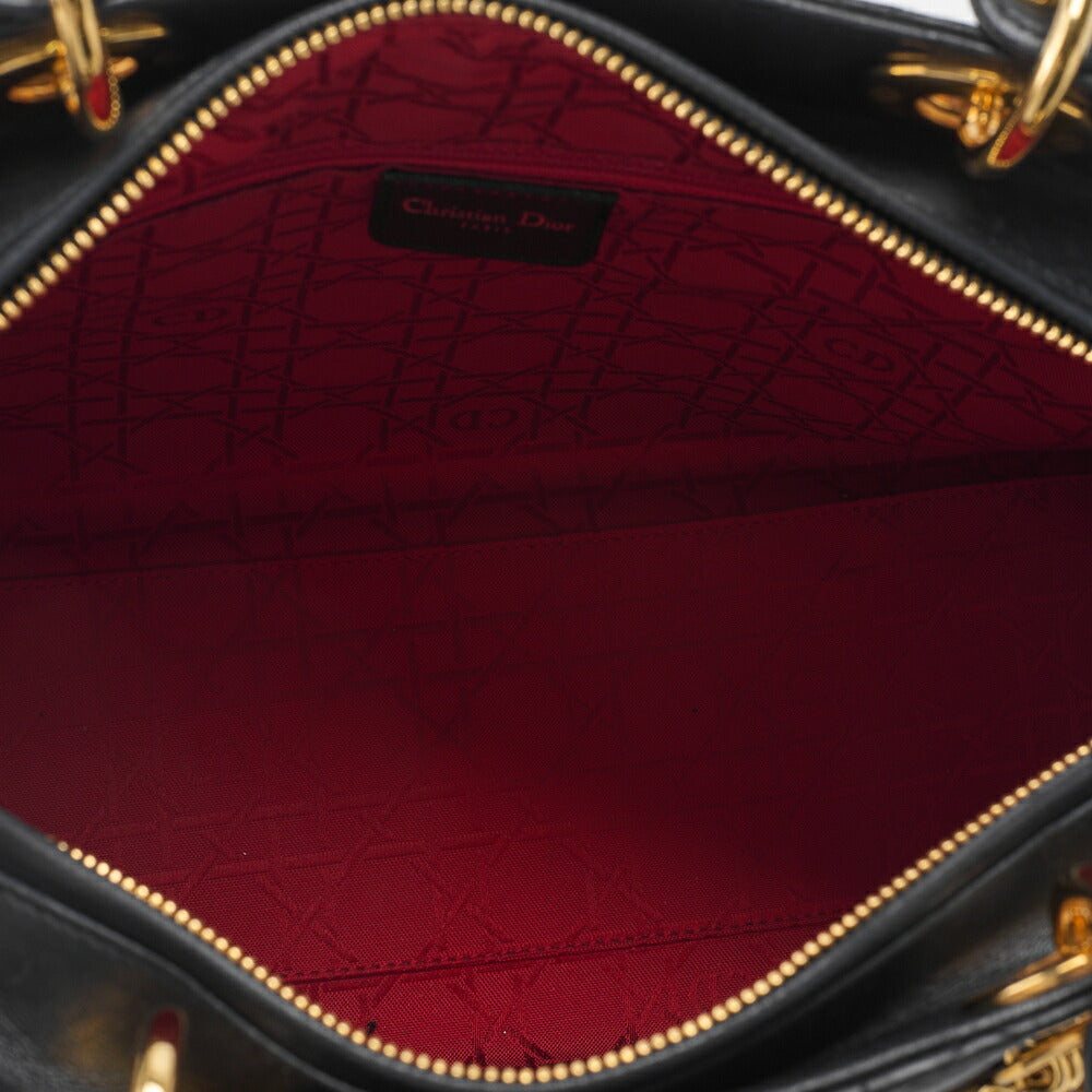 Elevate your style with the exquisite Dior Lady Dior Cannage 2WAY Handbag, crafted from luxurious lambskin in a stunning black hue, complemented by elegant gold fittings. This iconic piece is not just a handbag; it's a statement of sophistication and versatility.