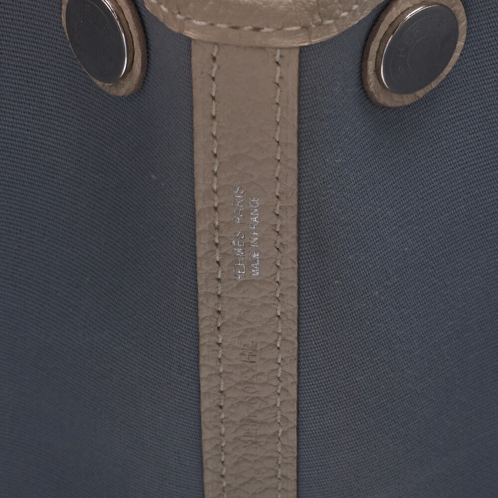 Elevate your style with the HERMES Garden Party TPM Tote Bag in stunning Toile Offiche Blue with silver metal fittings. This exquisite women's bag combines elegance and functionality, making it the perfect accessory for any occasion.
