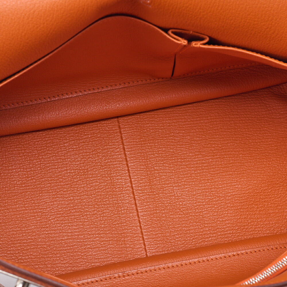 Indulge in the luxurious charm of the HERMES Hermes Gypsiere 34 Shoulder Bag, crafted from exquisite Tryon Clemence leather in a stunning shade of orange. This bag is not only a fashion statement but also a practical accessory designed for the modern woman.