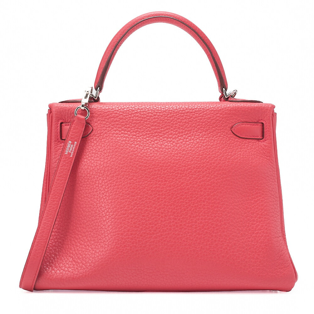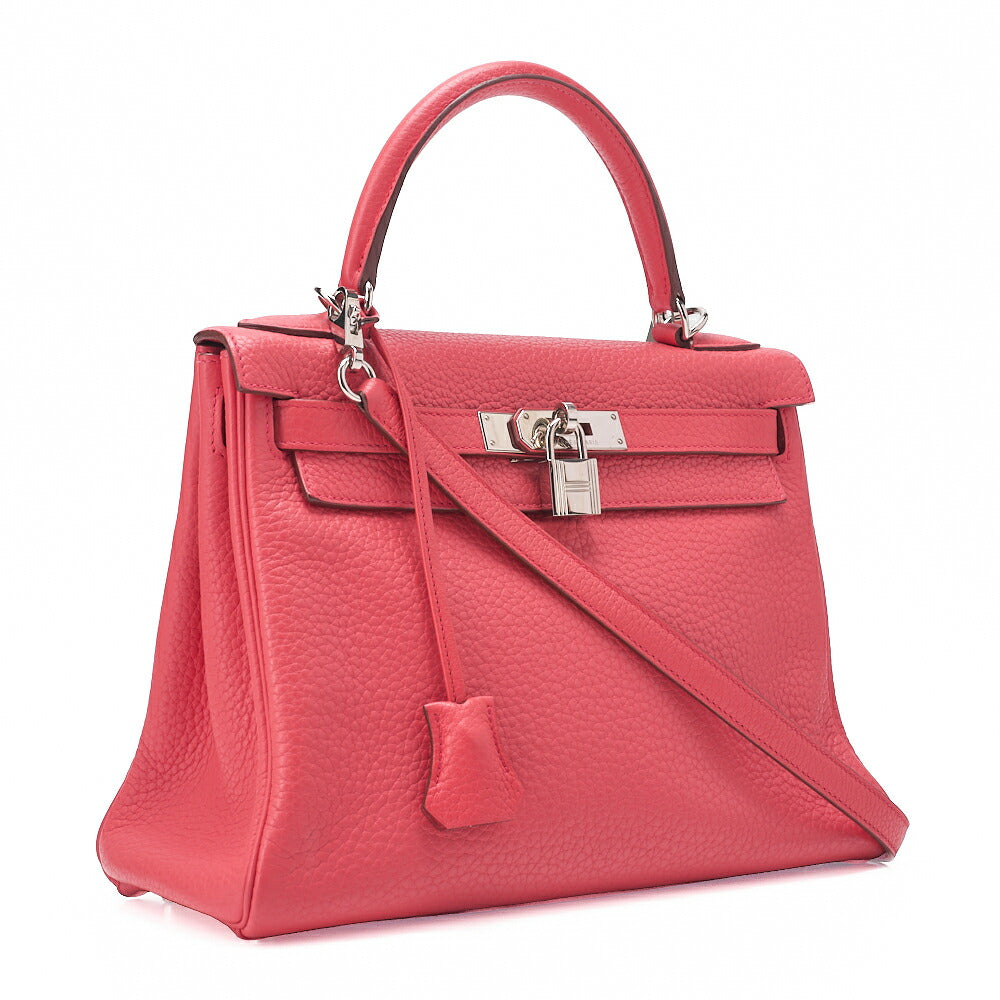 Pre-Owned Kelly 28 Handbag Inseam Trion Clemence Bougainvillea Silver-Tone Hardware, Pre-Owned]