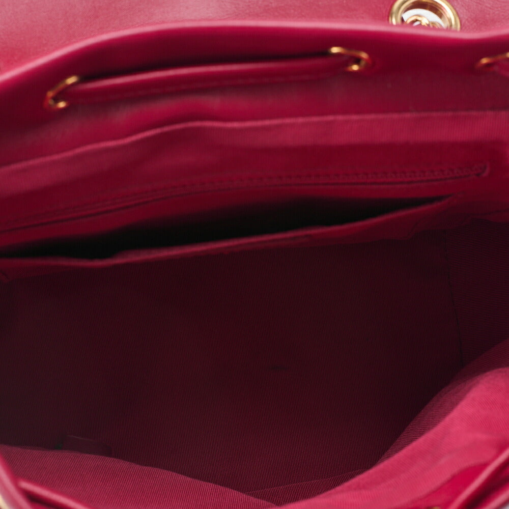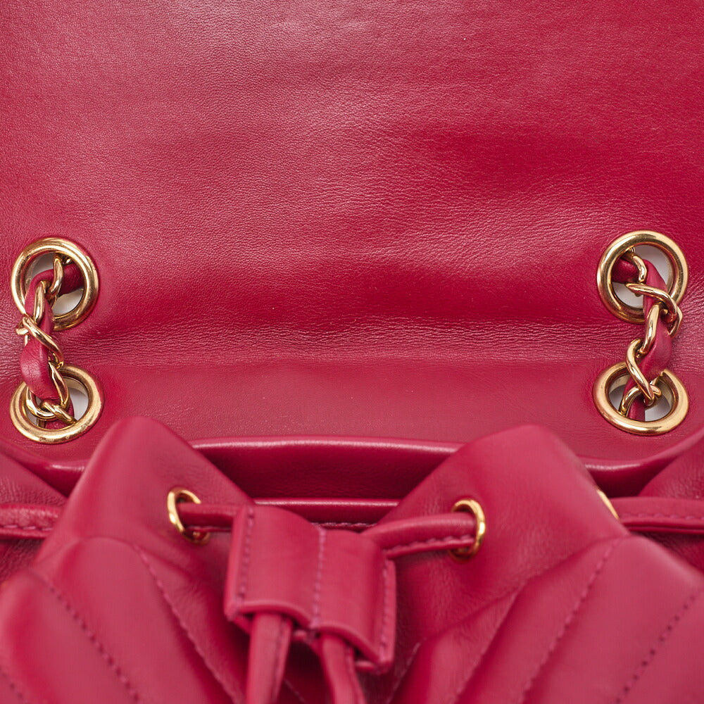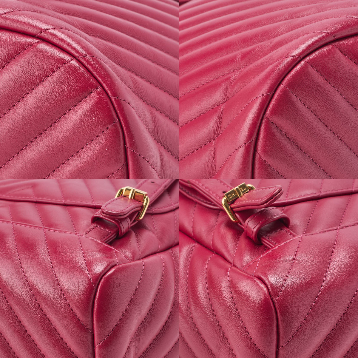 Elevate your accessory game with the CHANEL Lambskin V Stitch Turn Lock Backpack in Pink, adorned with elegant gold fittings. This stunning shoulder bag is the perfect blend of luxury and functionality, ideal for the modern woman on the go.