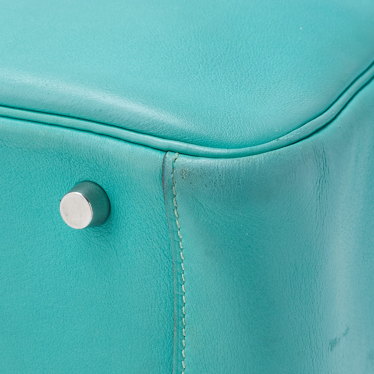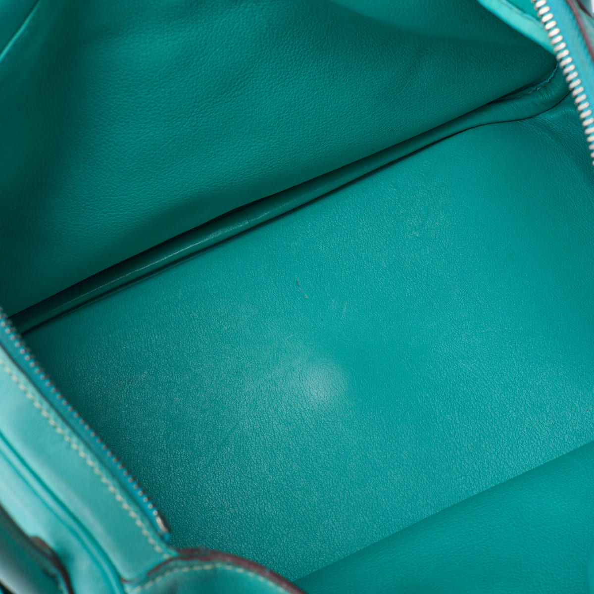 Discover the elegance of the HERMES Hermes Lindy 30 2way Shoulder Bag in a stunning Ragon Lagon color with exquisite silver metal fittings. This pre-loved gem, crafted from luxurious Swift leather, exemplifies sophistication and versatility, making it the perfect accessory for the modern woman.
