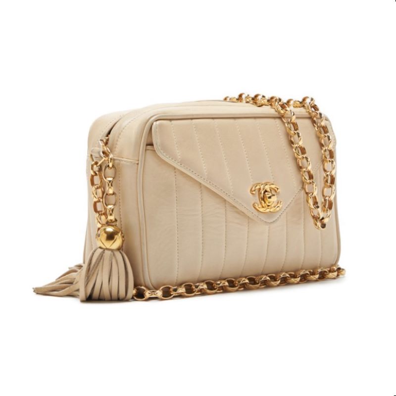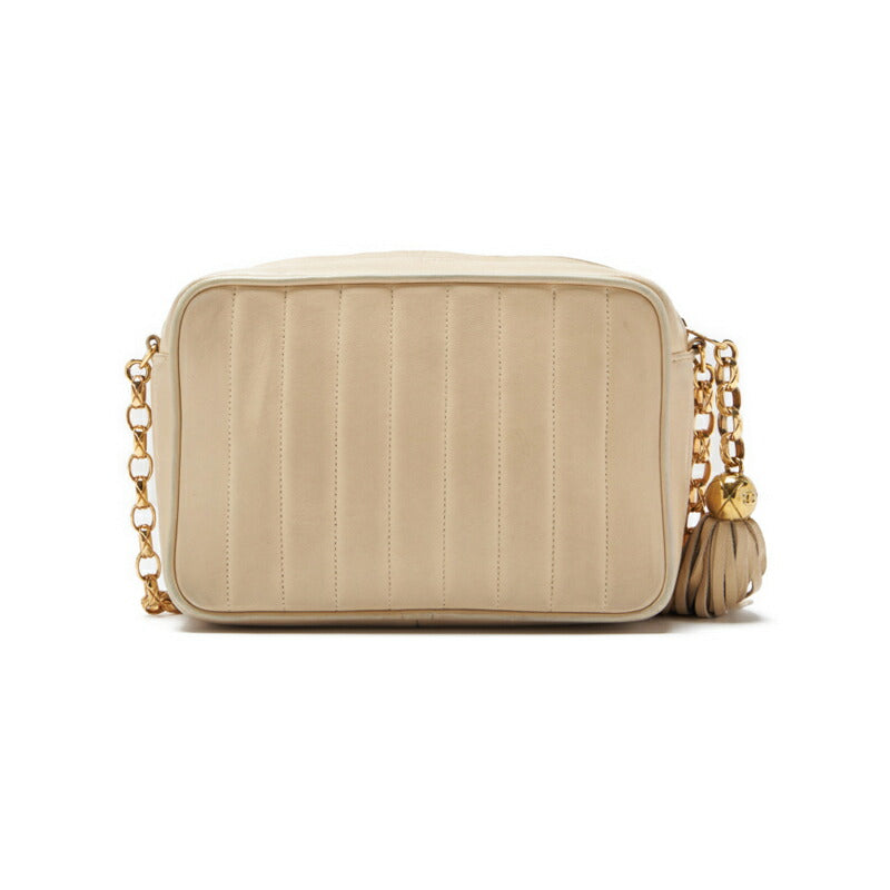 Pre-Owned Mademoiselle Fringe Bijou Chain Shoulder Bag Lambskin Ivory Gold-Tone Hardware Pre-Owned