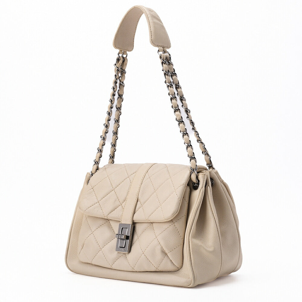 Pre-Owned Shoulder Bag, Matelasse, 2.55 Lock, Soft Caviar, Ivory, Silver-Tone Hardware, Pre-Owned