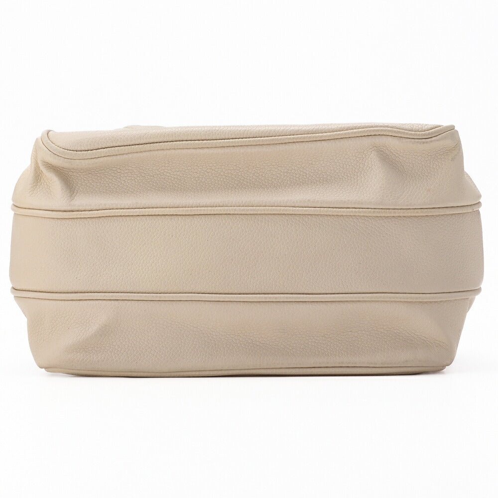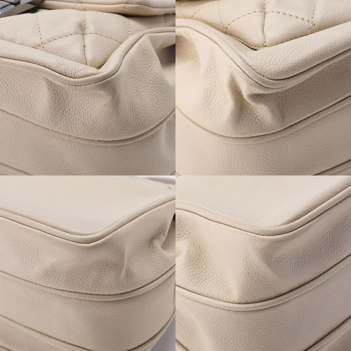 Measuring approximately W23cm x H17cm x D13cm, this compact yet spacious bag provides ample room for your essentials while maintaining a chic silhouette. The silver hardware perfectly complements the pristine ivory, adding a touch of refined glamour.