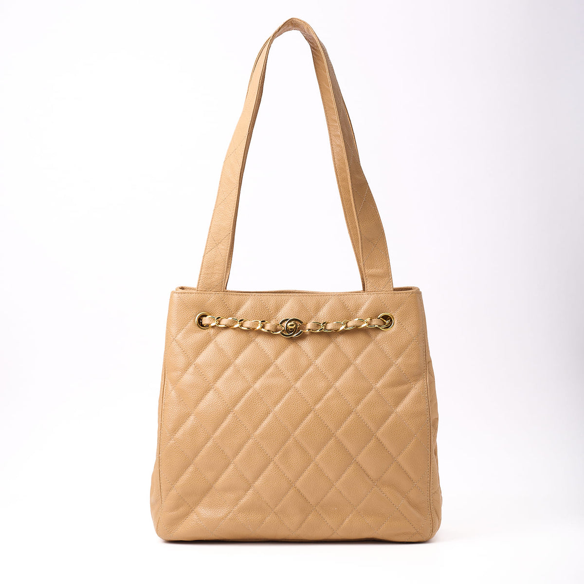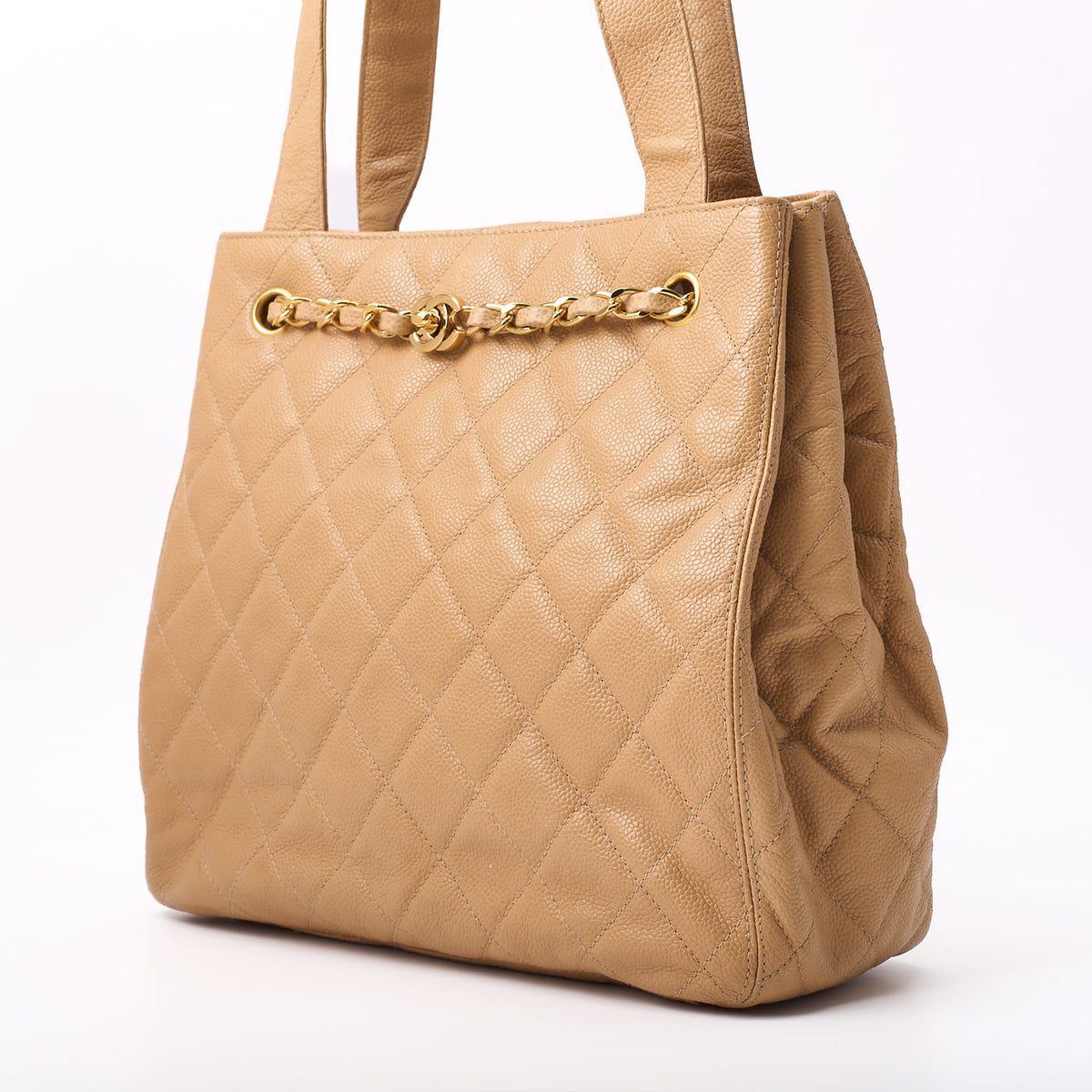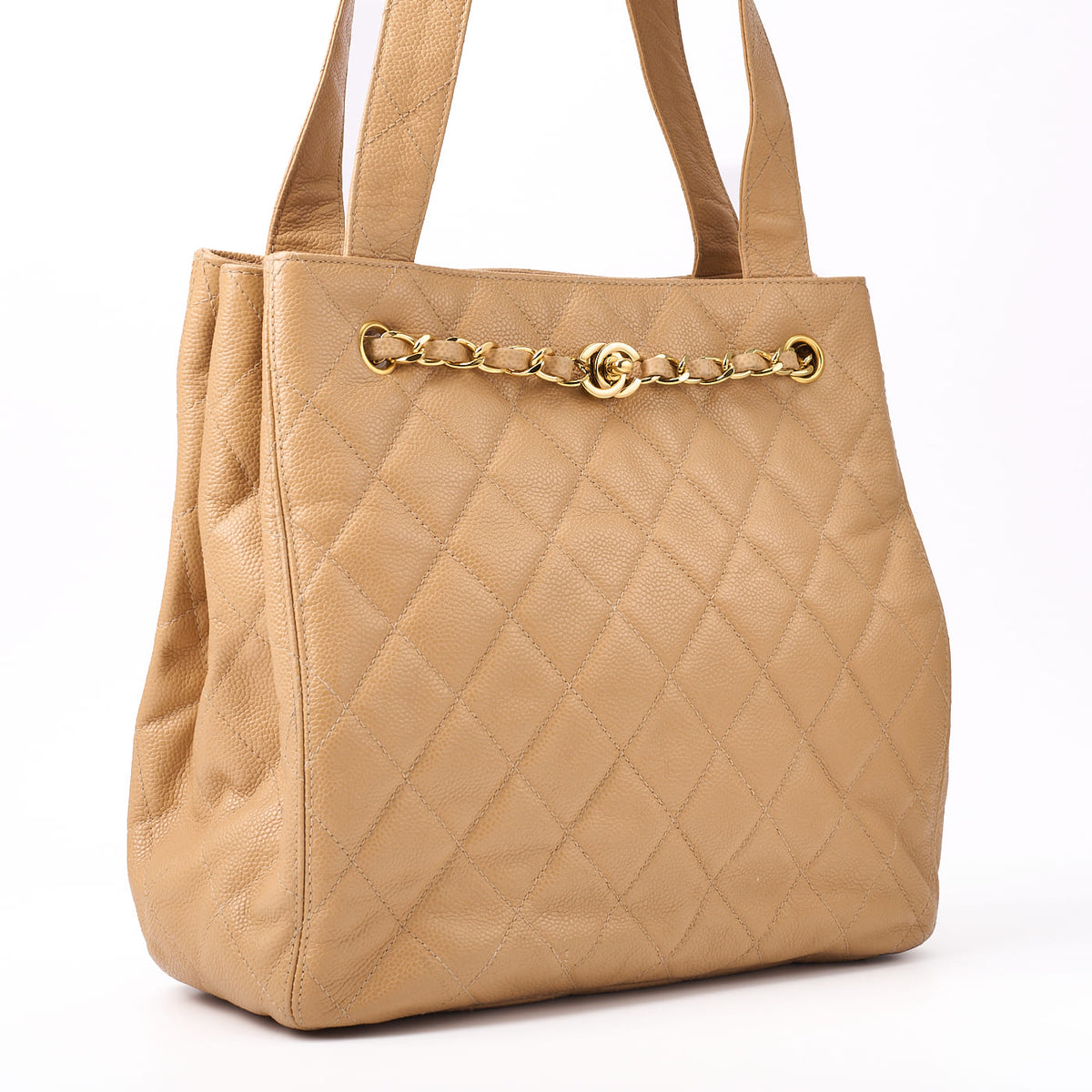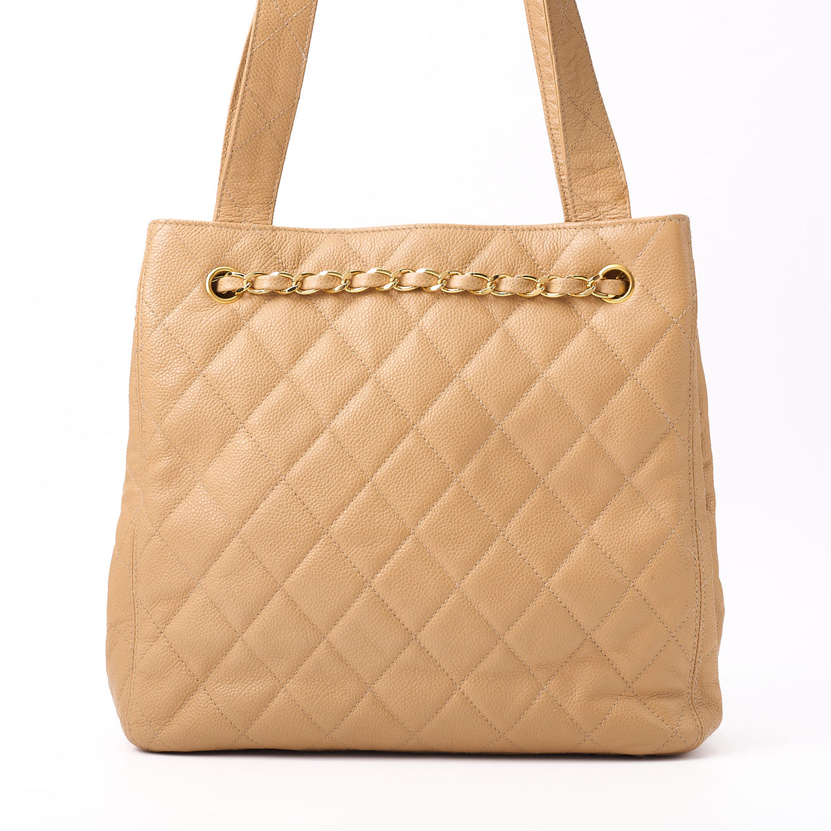 Pre-Owned Tote Bag Matelasse Chain Lock Caviar Skin Beige Gold-Tone Hardware Pre-Owned