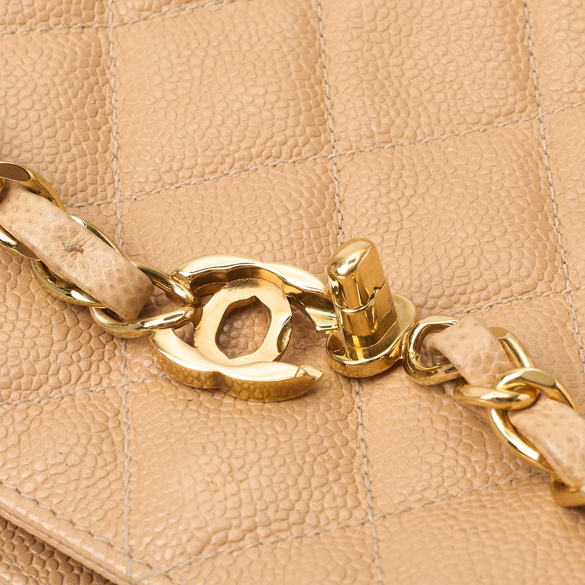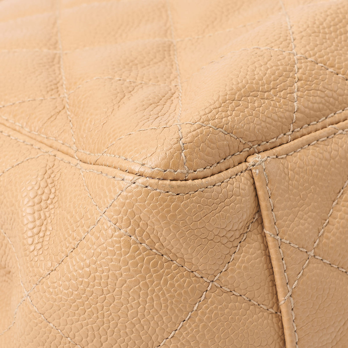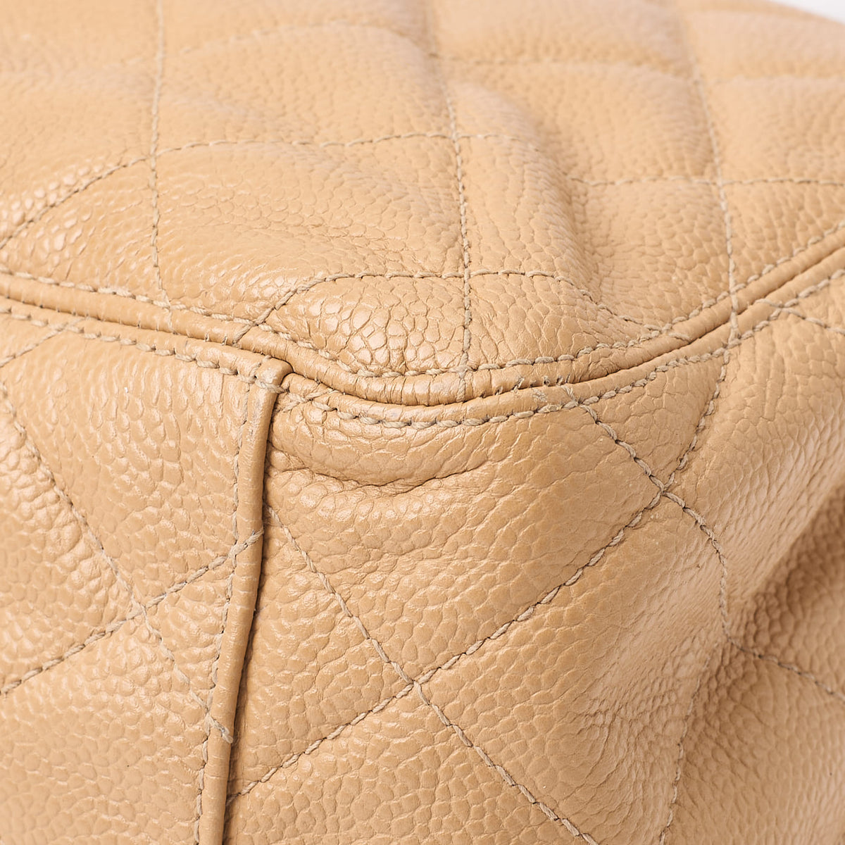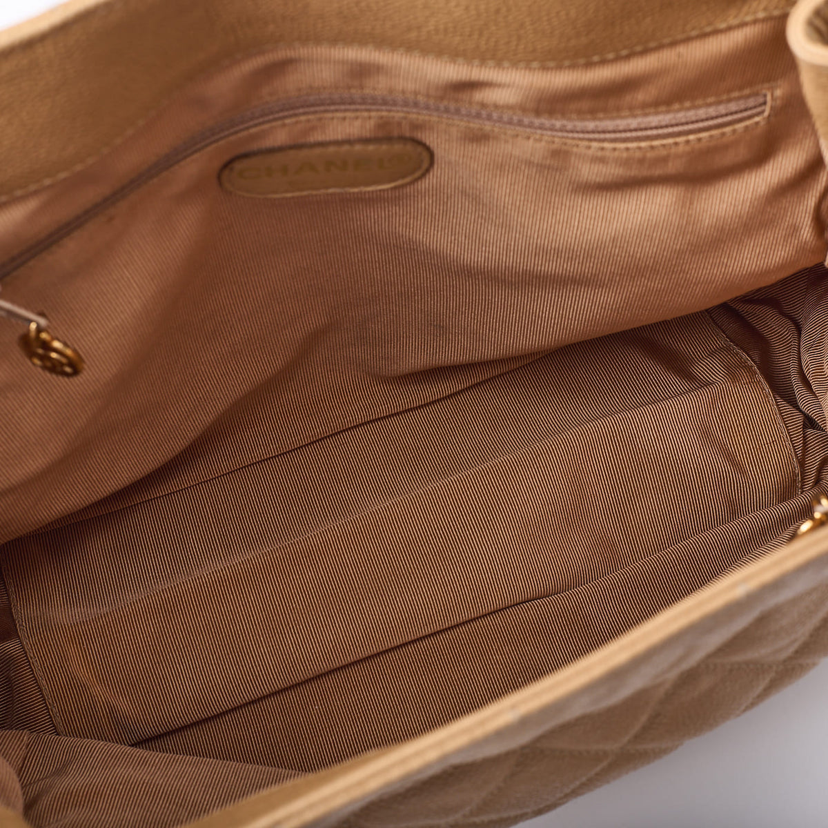 Pre-Owned Tote Bag Matelasse Chain Lock Caviar Skin Beige Gold-Tone Hardware Pre-Owned