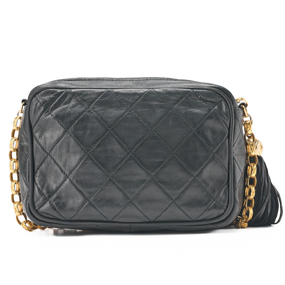 Pre-Owned Shoulder Bag Matelasse Coco Mark With Fringe Bijou Chain Lambskin Black Gold-Tone Hardware Pre-Owned