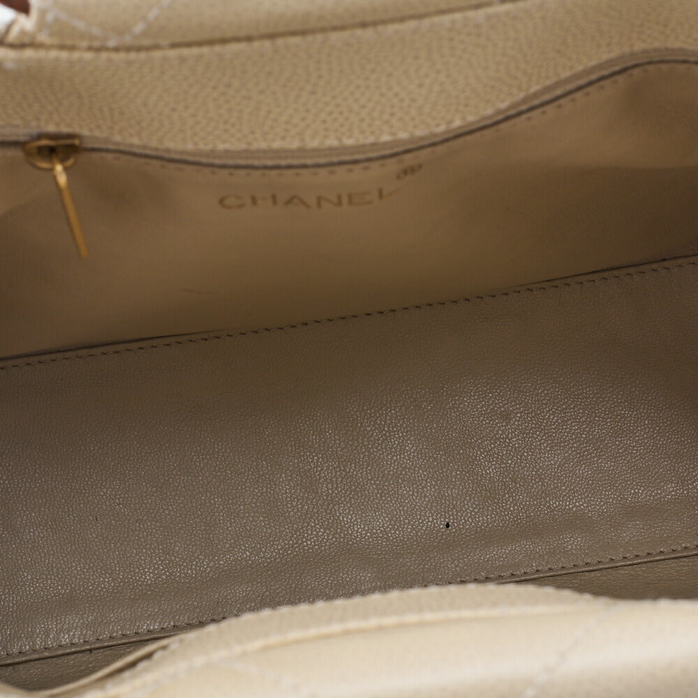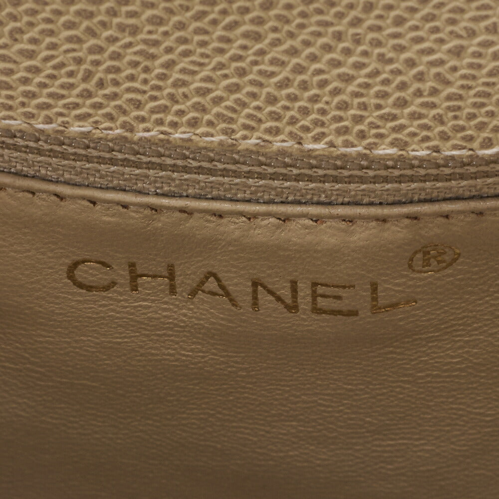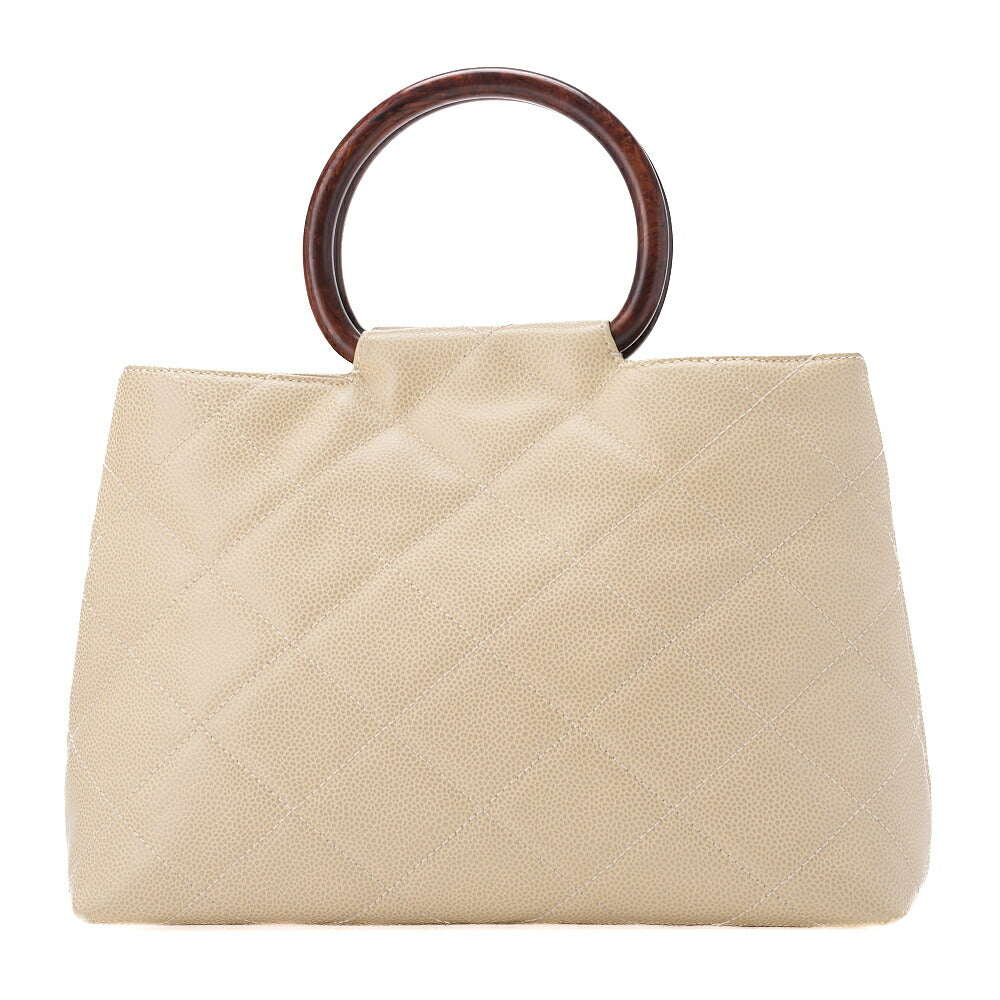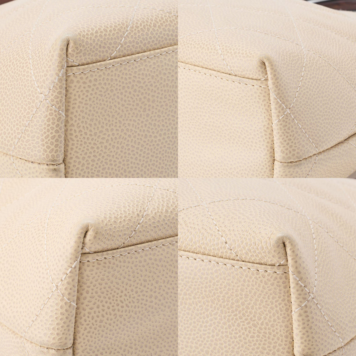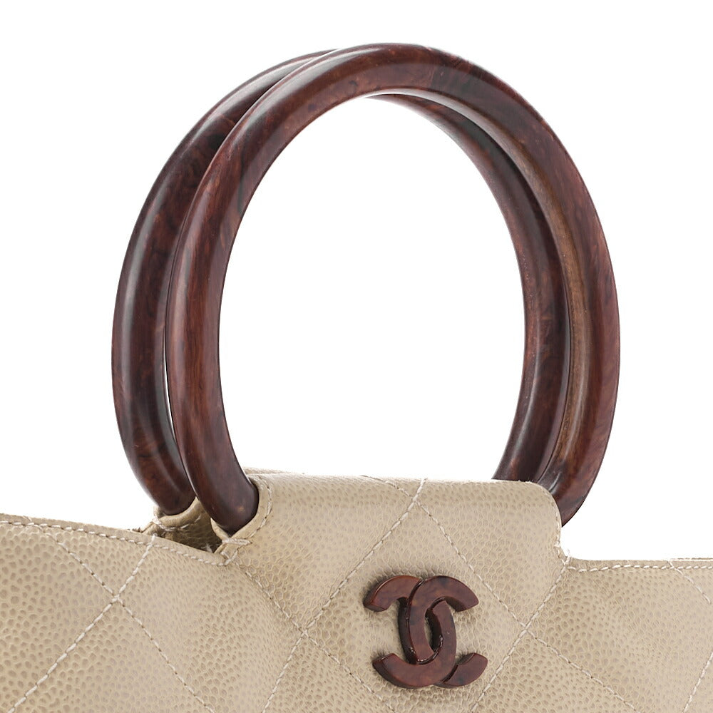 Pre-Owned Handbag, Matelasse Coco Mark Wood Pattern, Caviar Skin, Beige, Gold-Tone Hardware, Pre-Owned