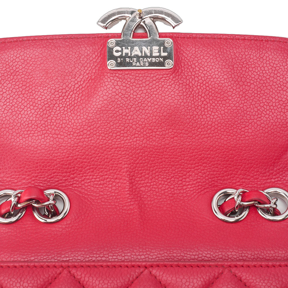 Elevate your style with the CHANEL Matelasse Coco Push Lock Chain Shoulder Bag, a stunning accessory crafted from luxurious Caviar Skin in a vibrant red hue, complemented by elegant silver fittings. This iconic women's bag combines functionality with opulence, making it perfect for any occasion.