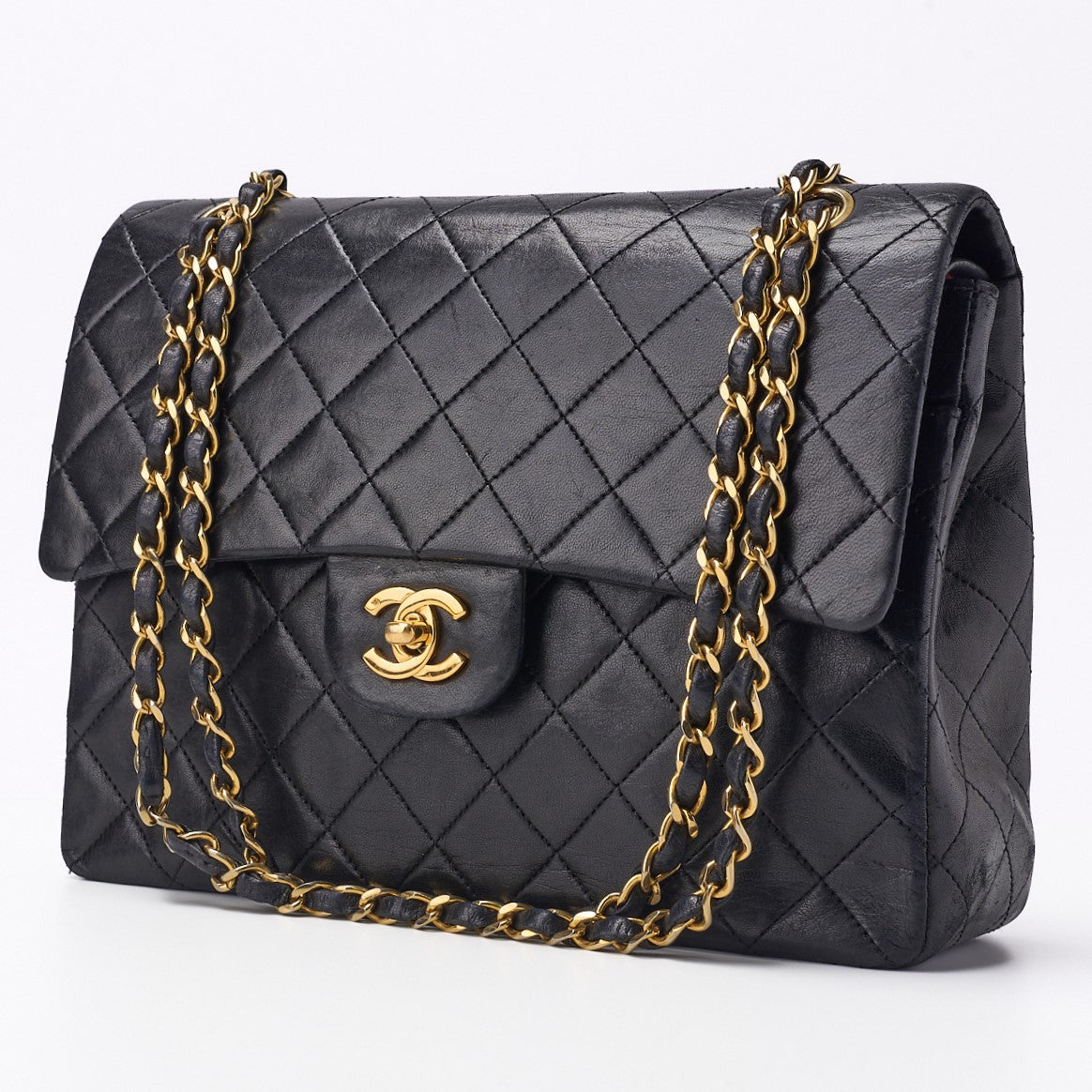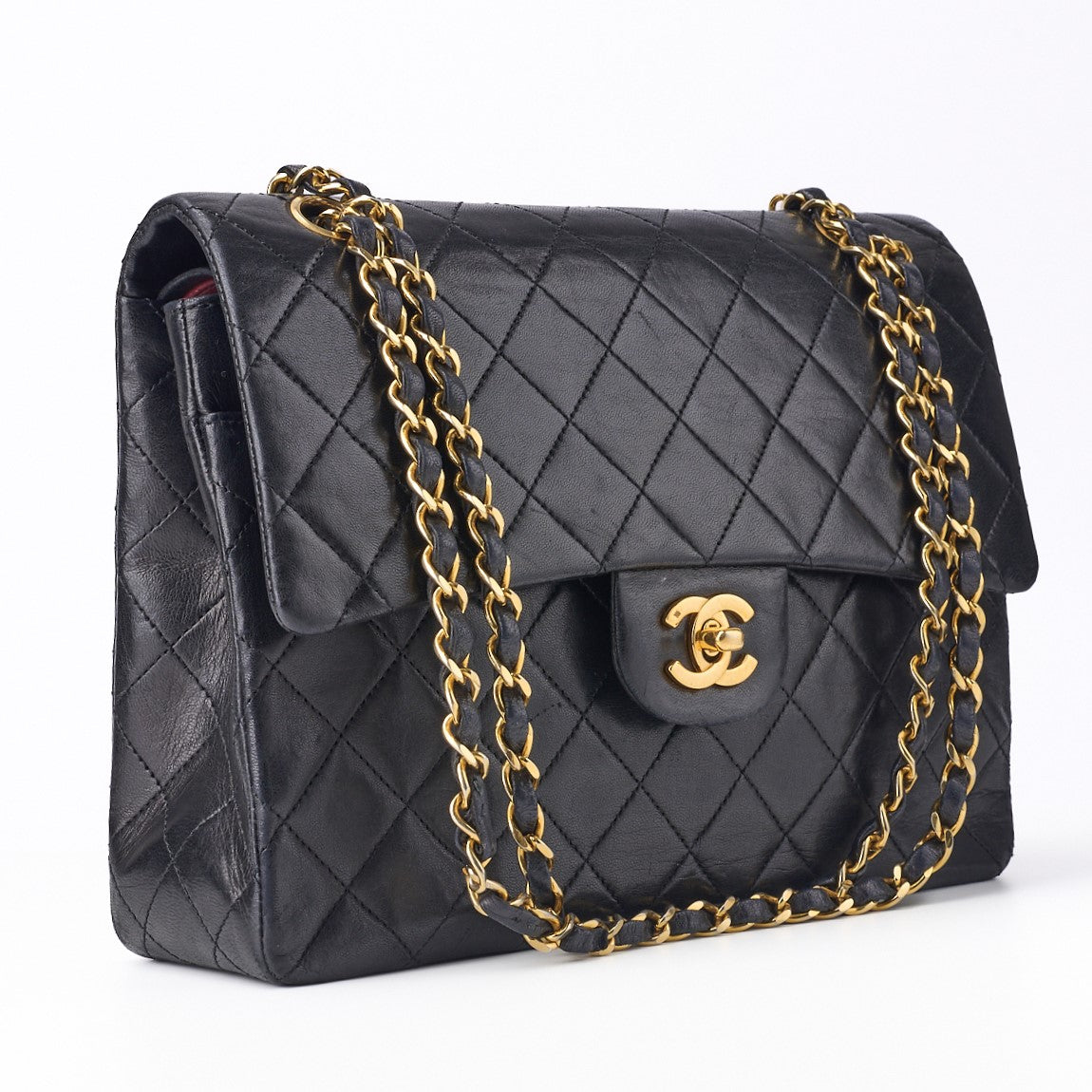 Pre-Owned Shoulder Bag, Matelasse Double Flap, Lambskin, Black, Gold-Tone Hardware, Pre-Owned