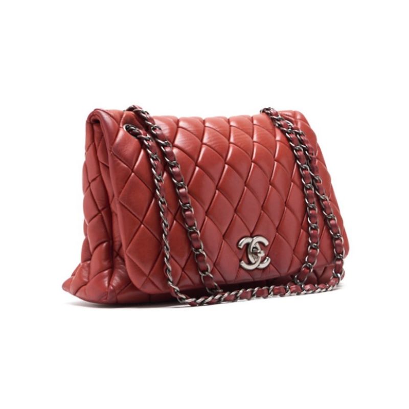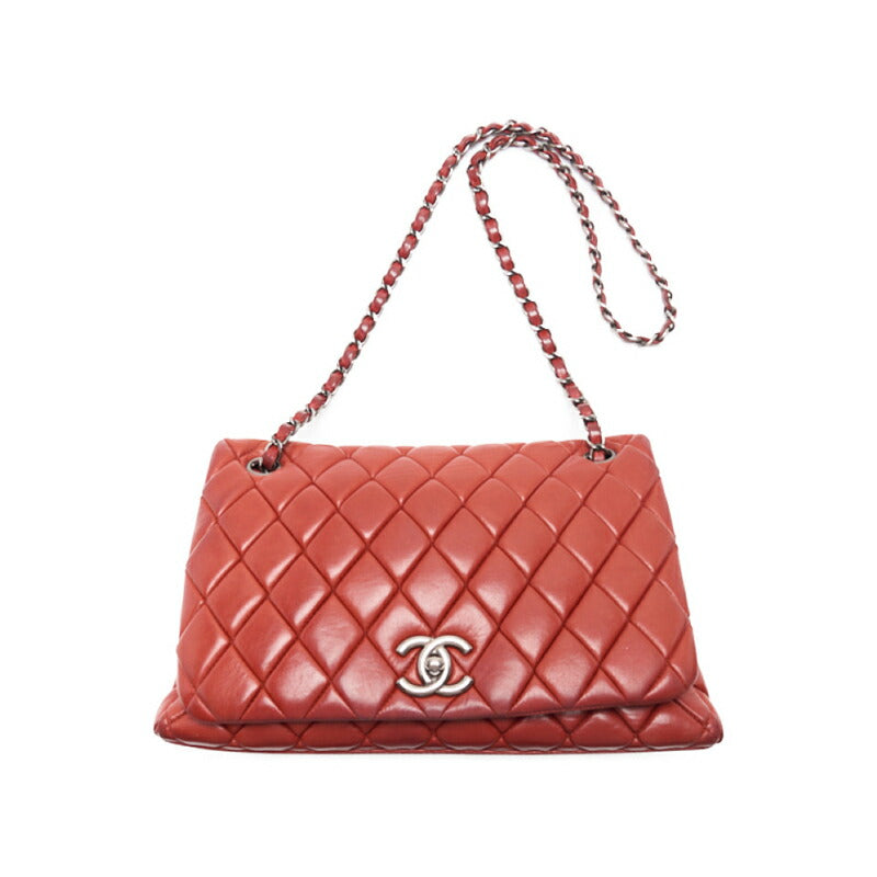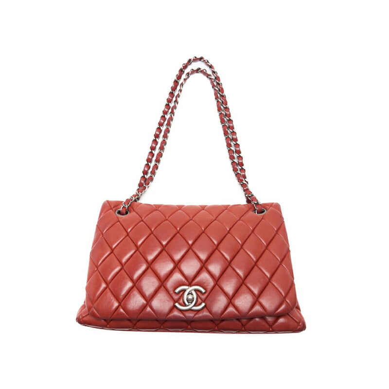 Pre-Owned Shoulder Bag, Matelasse Full Flap, Lambskin, Red, Silver-Tone Hardware, Pre-Owned