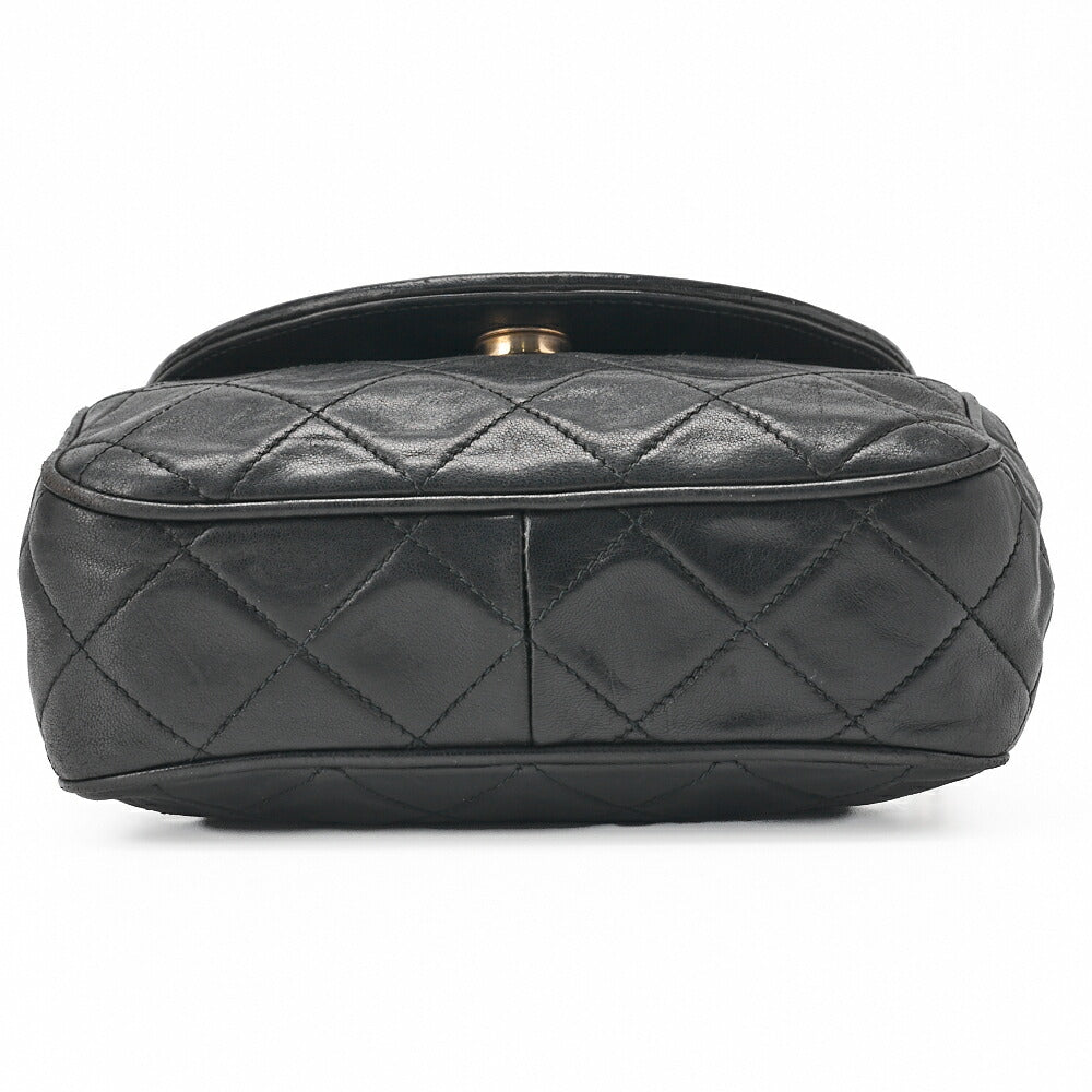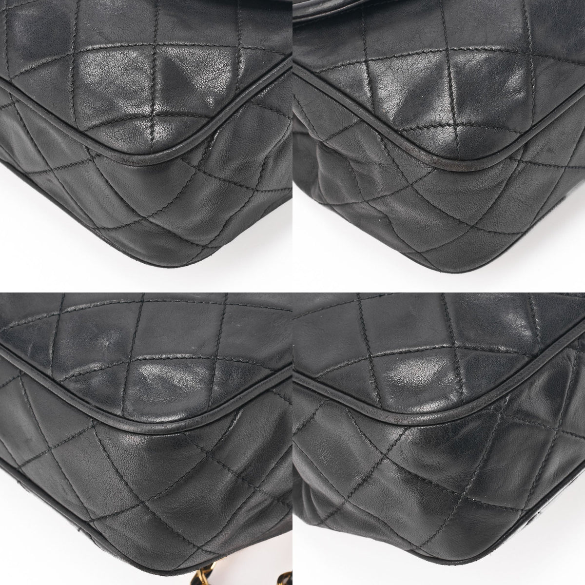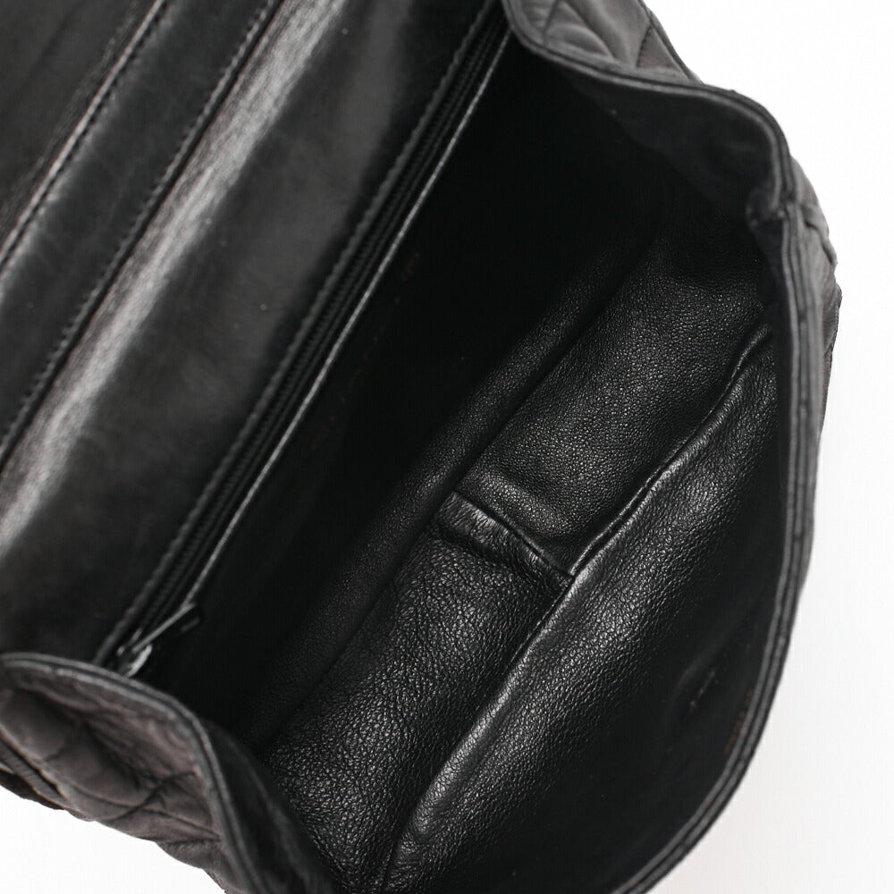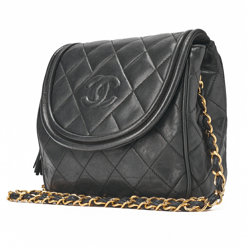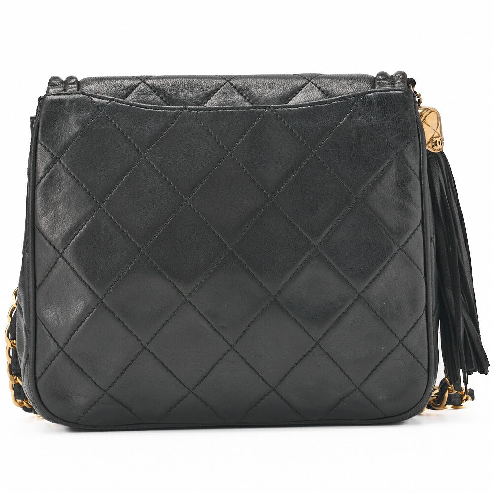 Pre-Owned Shoulder Bag Matelasse Outside Flap Fringe Chain Shoulder Lambskin Black Gold-Tone Hardware Pre-Owned