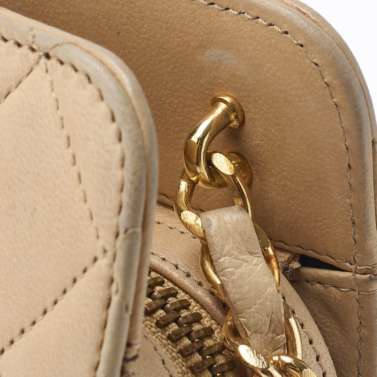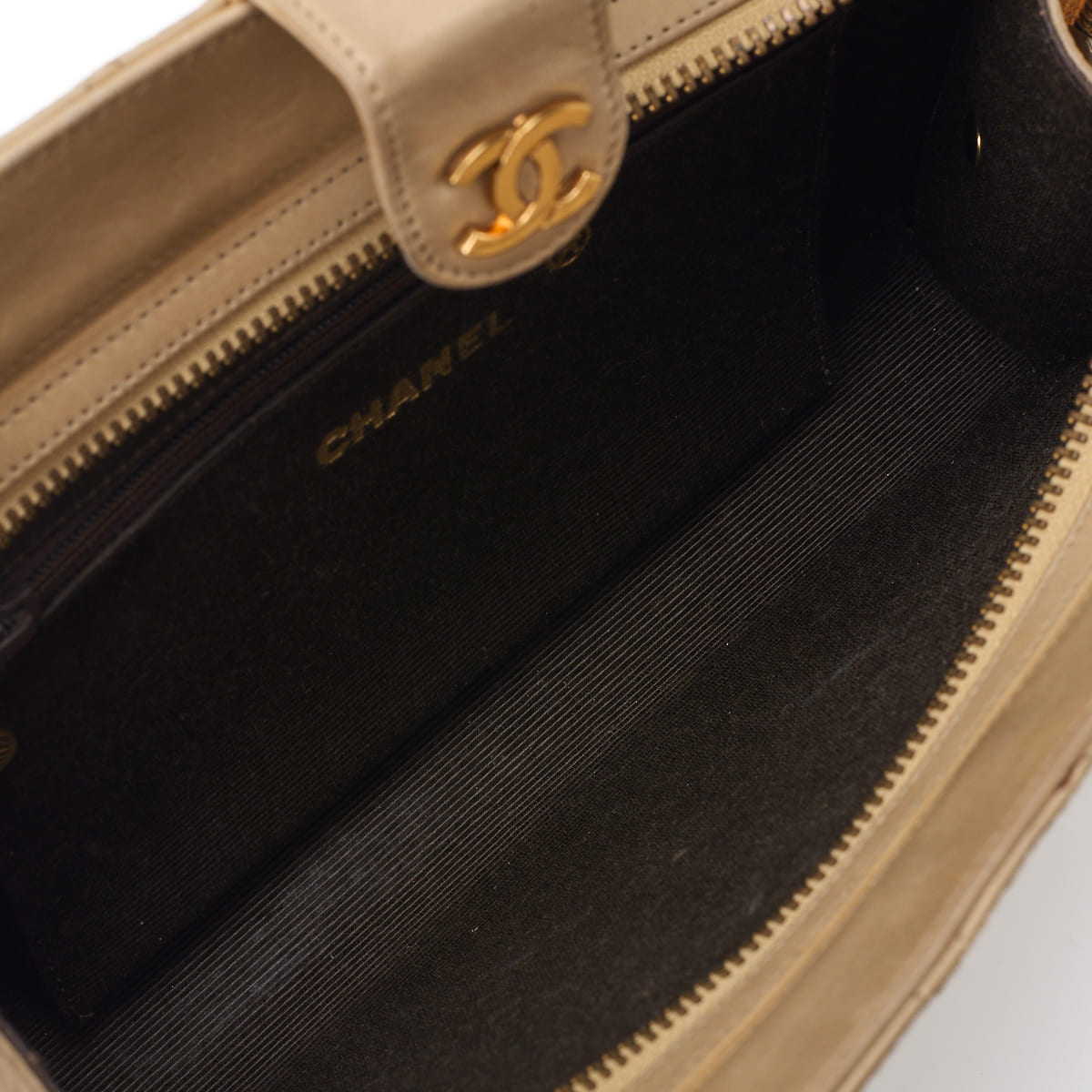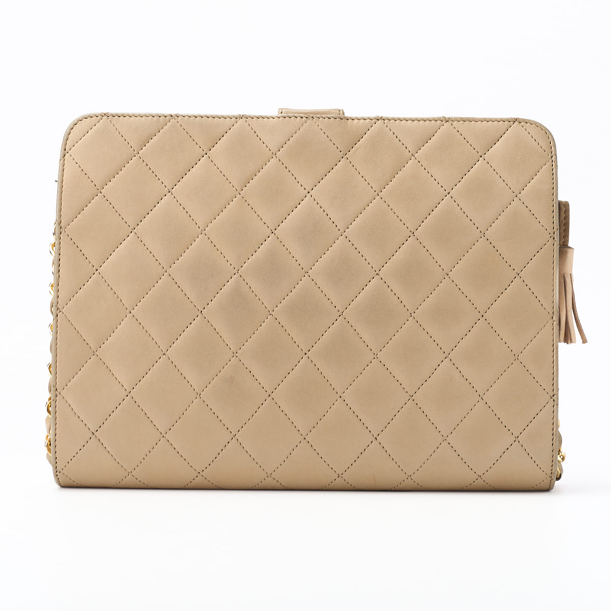 Pre-Owned Shoulder Bag Matelasse Push Lock Chain Shoulder Lambskin Beige Gold-Tone Hardware Pre-Owned