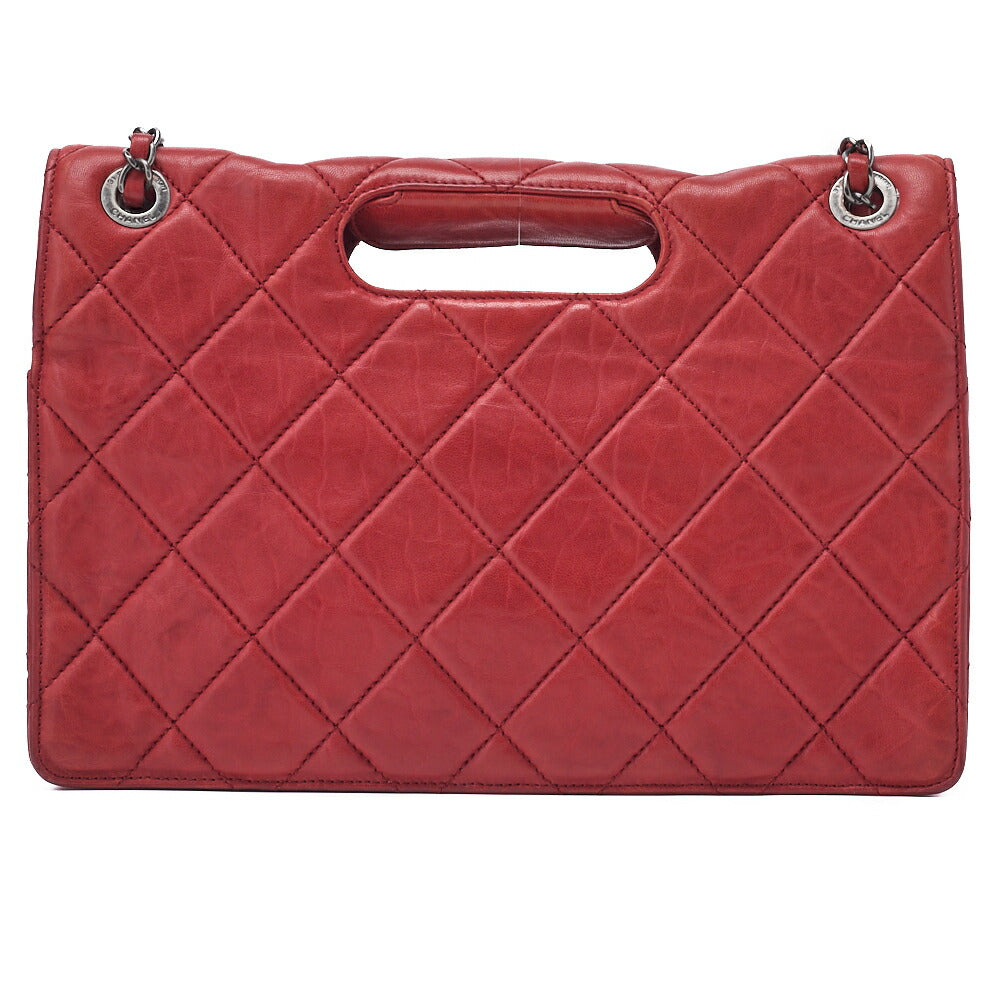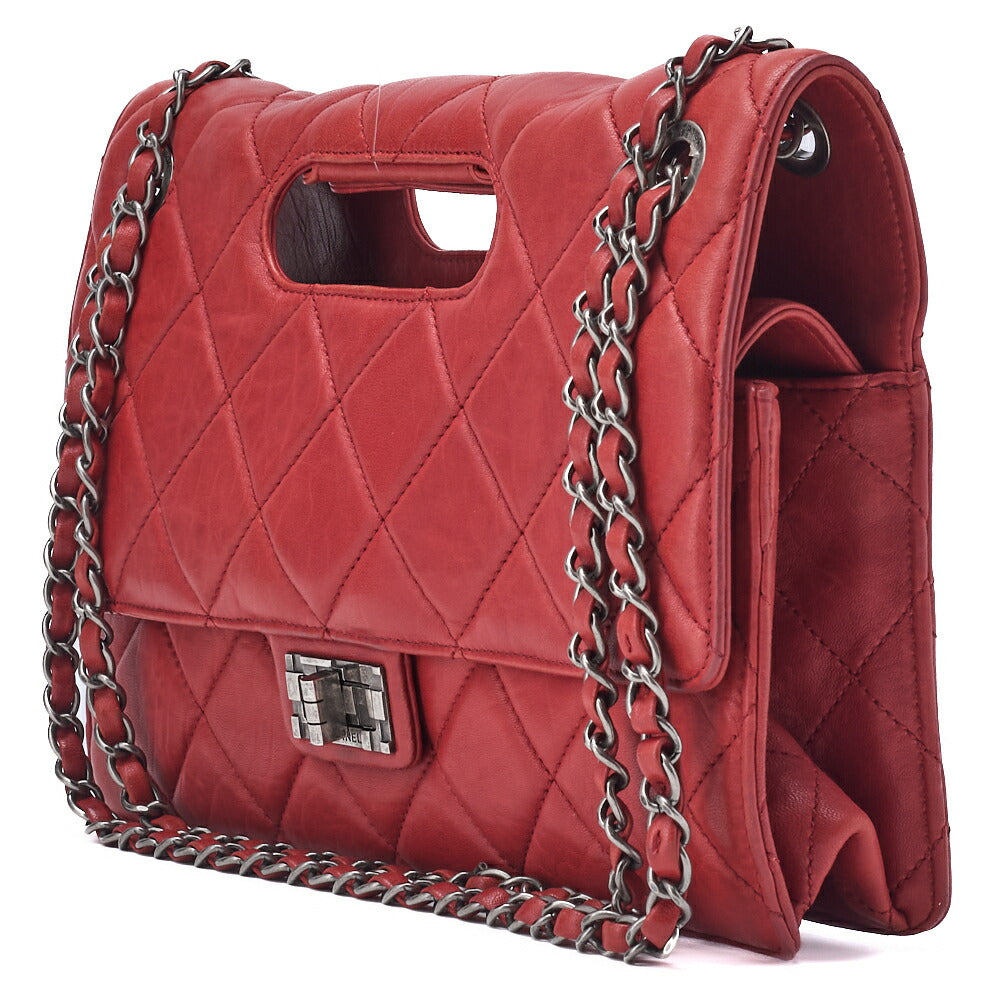 Pre-Owned Shoulder Bag Matelasse Turn Lock 2.55 Lock Chain Lambskin Red Silver-Tone Hardware Pre-Owned