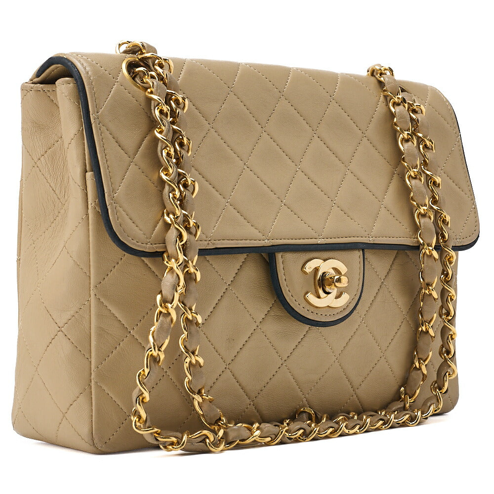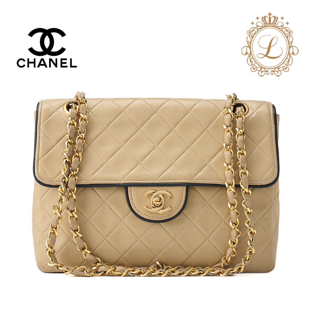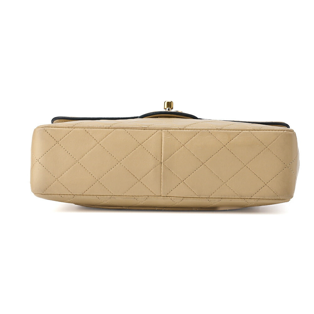 Step out in style with the CHANEL Matelasse Turn Lock Bicolor Single Flap Chain Shoulder Bag, a stunning blend of elegance and functionality. Crafted from luxurious lambskin, this exquisite bag features a chic combination of beige and black, making it a versatile addition to any wardrobe.