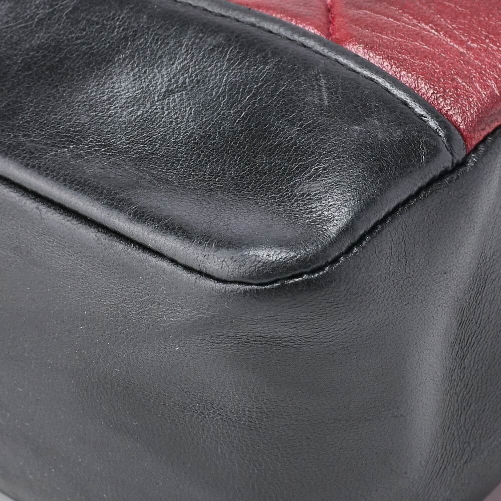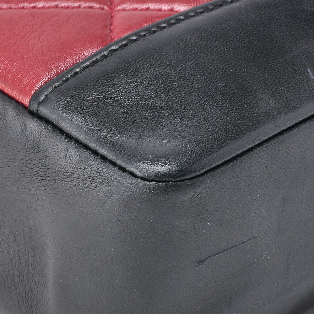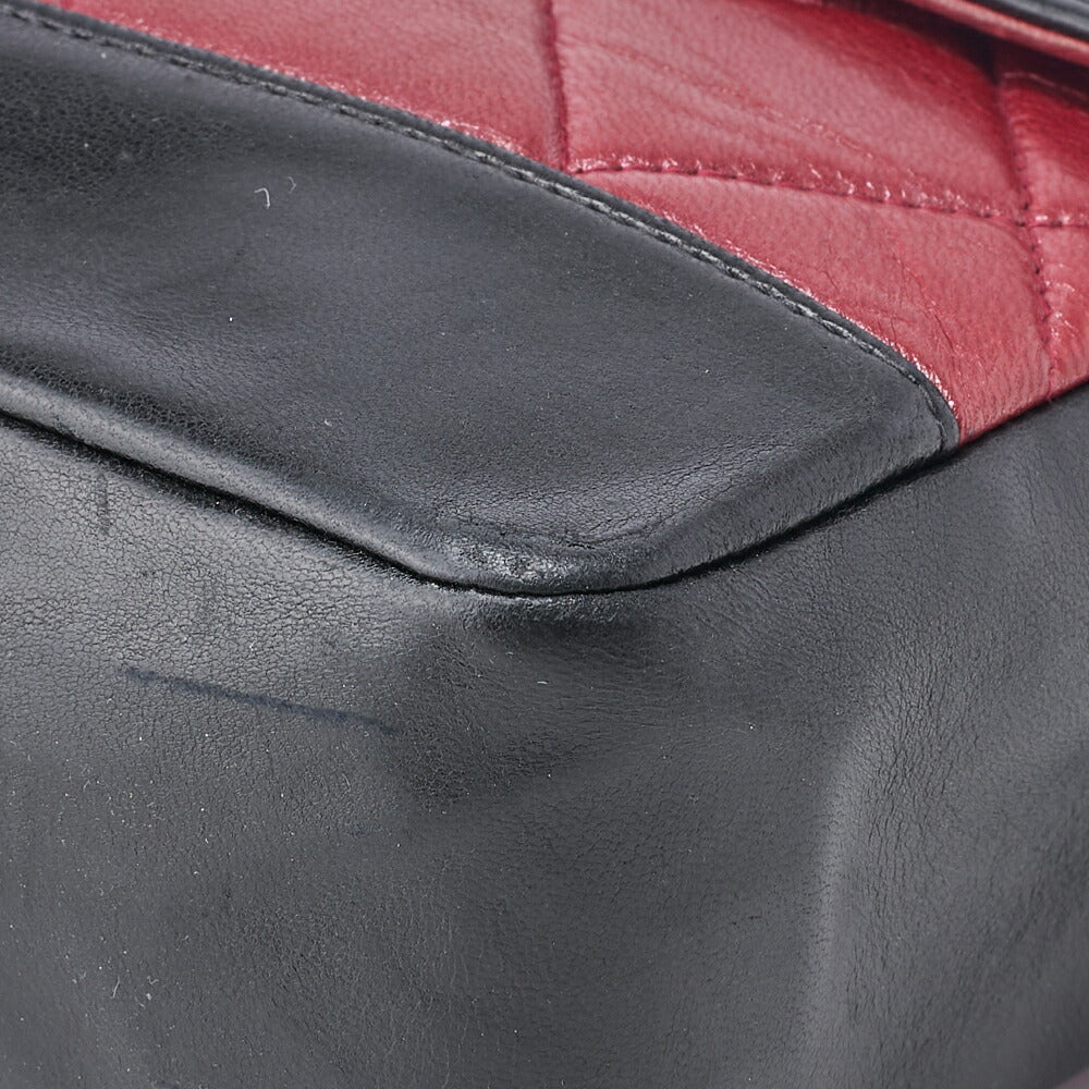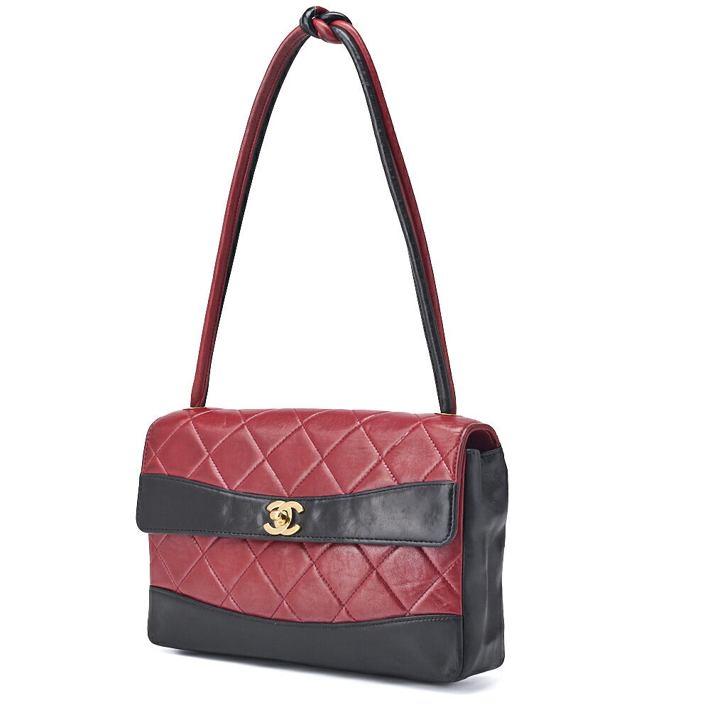 Indulge in the timeless elegance of the CHANEL Matelasse Turn Lock Bicolor Single Flap Shoulder Bag, a stunning accessory that combines luxury with functionality. Crafted from sumptuous lambskin, this exquisite bag features a captivating bicolor design in rich red and black hues, complemented by luxurious gold fittings.