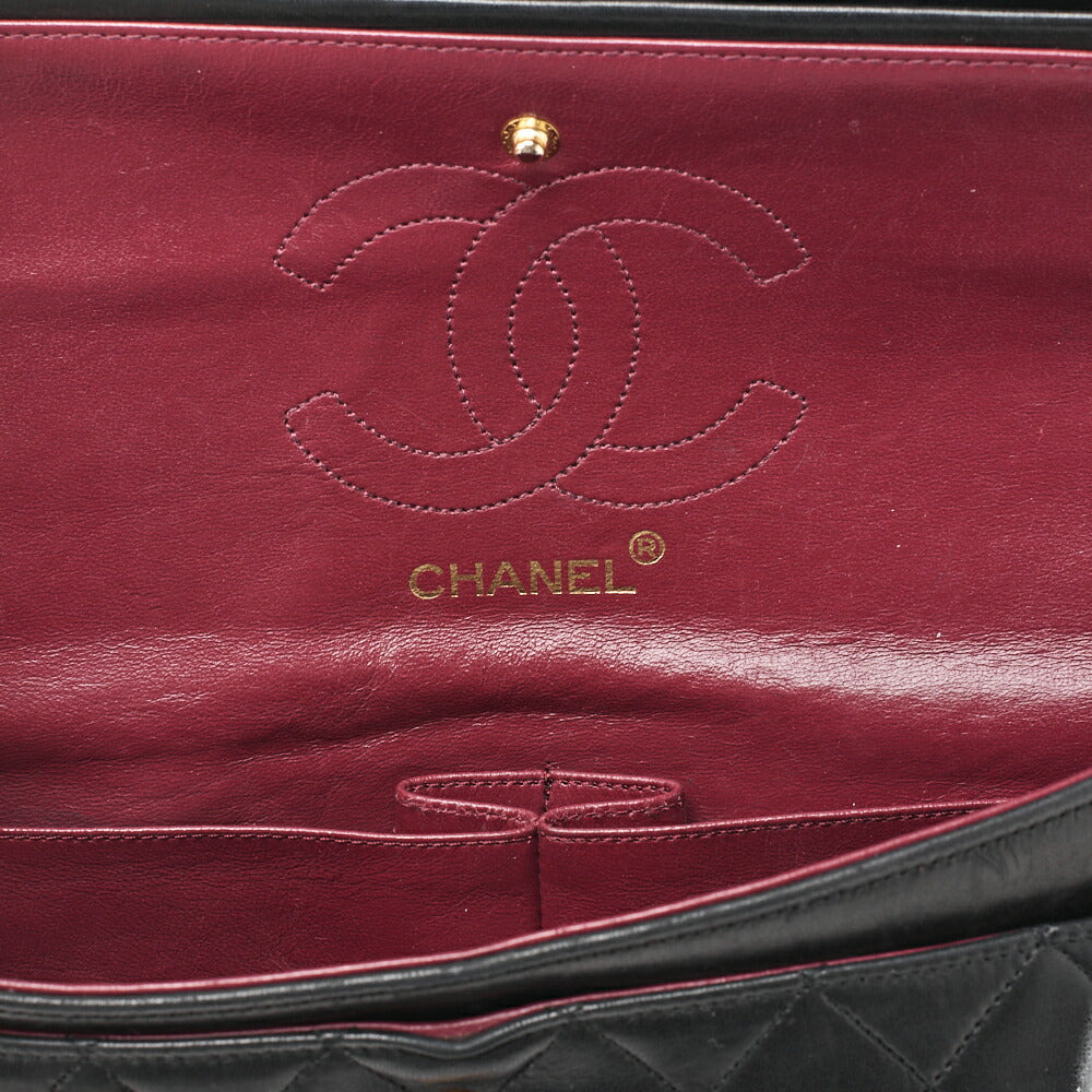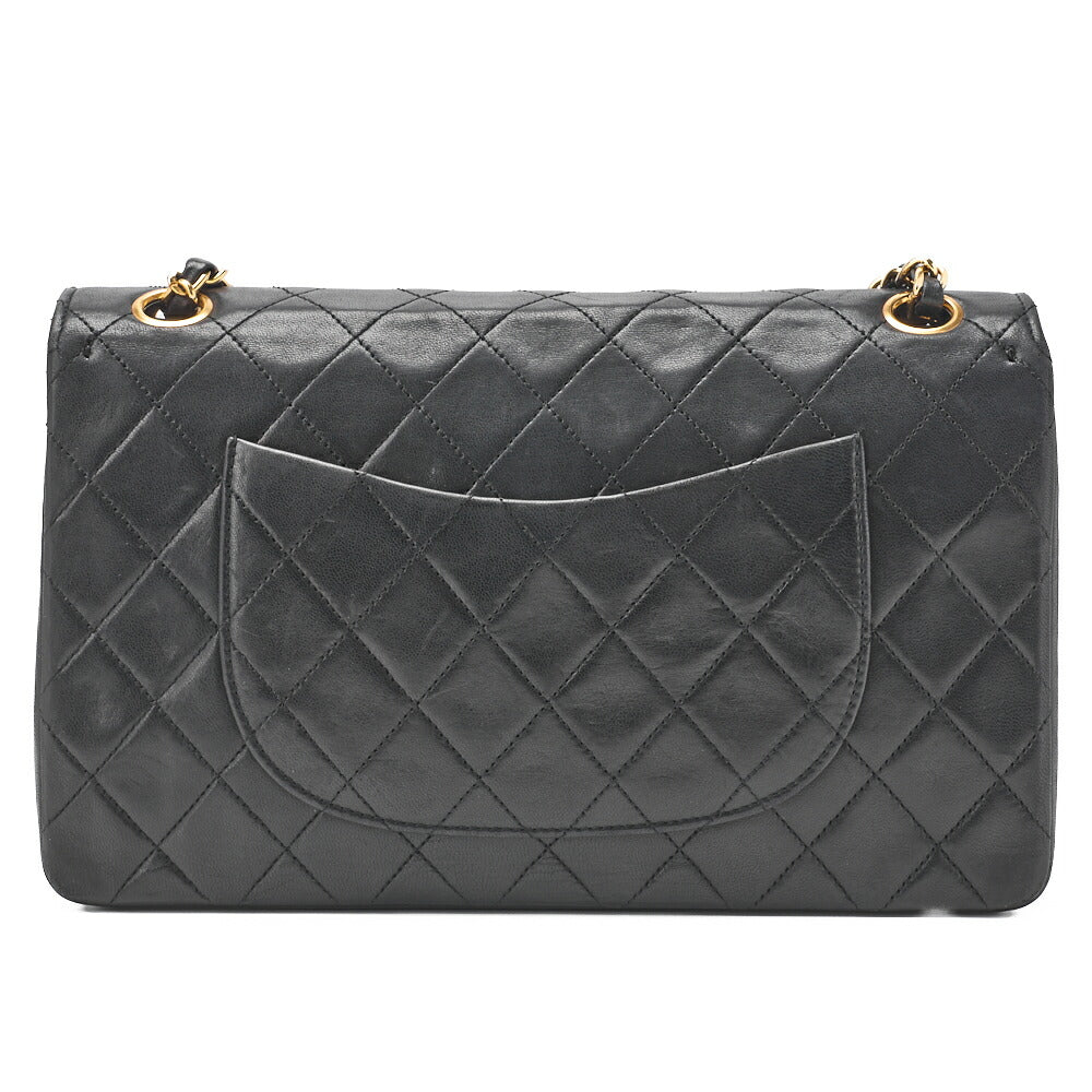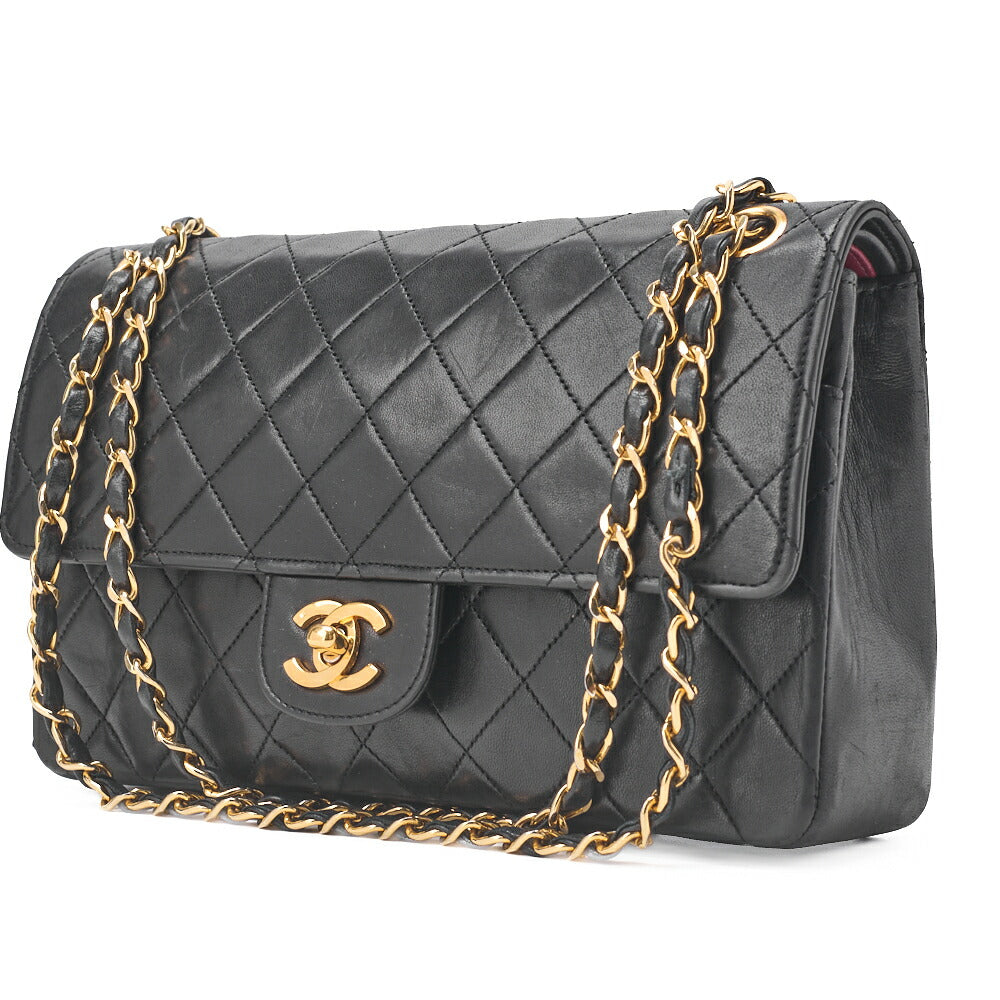 The iconic double flap design not only enhances security but also adds an element of sophistication to your ensemble. Adorned with gold fittings, this bag effortlessly combines high fashion with functionality. Its compact size, measuring approximately W25cm x H17cm x D6.5cm, makes it perfect for day-to-night transitions, allowing you to carry your essentials with ease.