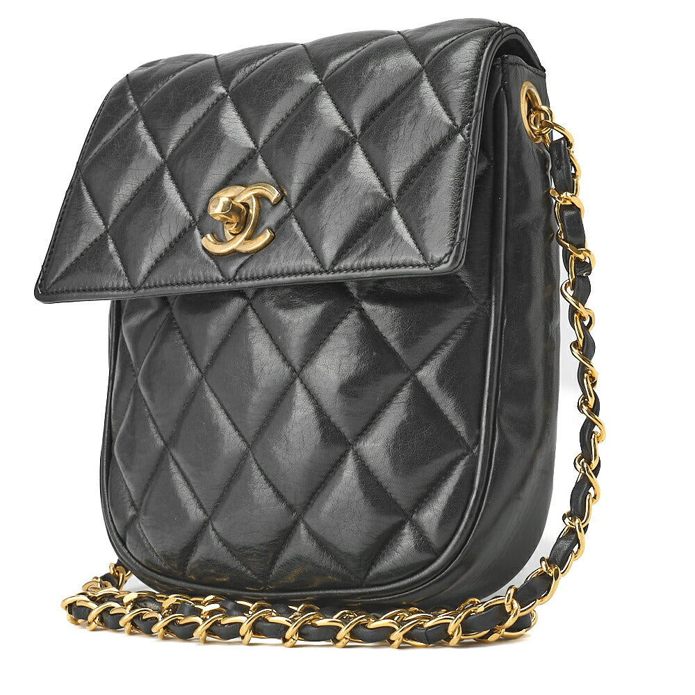 Pre-Owned Shoulder Bag, Matelasse Vertical Straight Flap, Lambskin, Black, Gold-Tone Hardware, Pre-Owned