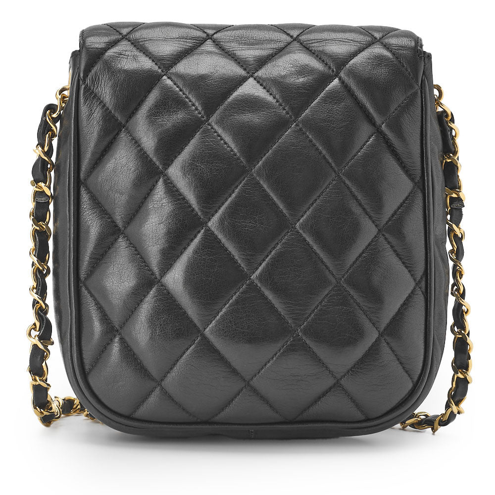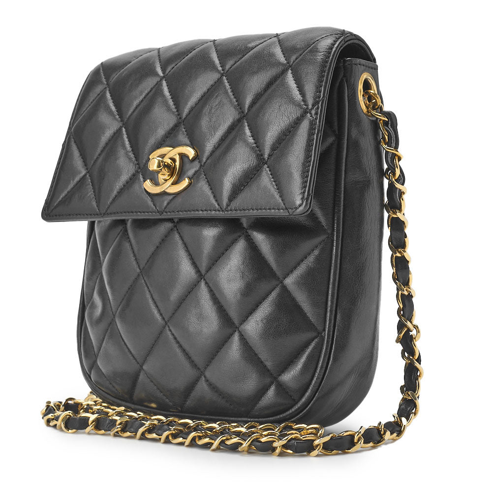 Pre-Owned Shoulder Bag, Matelasse Vertical Straight Flap, Lambskin, Black, Gold-Tone Hardware, Pre-Owned