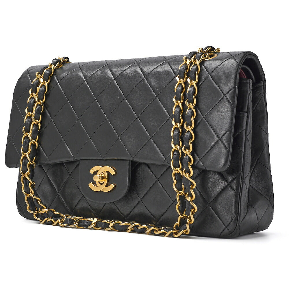 Pre-Owned Shoulder Bag, Matelasse W Flap, Chain Shoulder, Lambskin, Black, Gold-Tone Hardware, Pre-Owned