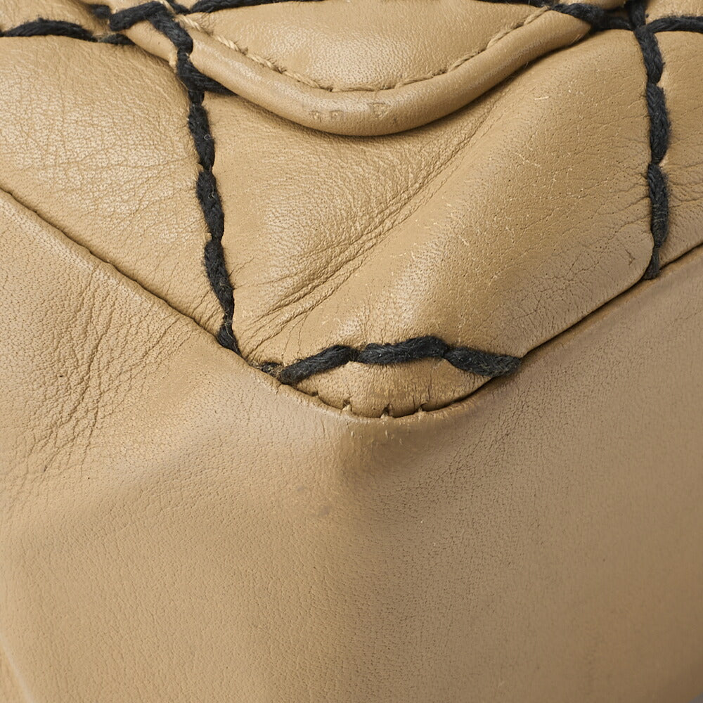 Experience timeless elegance with the CHANEL Matelasse Wild Stitch Chain Shoulder Bag, crafted from luxurious calfskin in a stunning beige hue accented with chic black fittings. This exquisite piece is not just a bag; it’s a statement that embodies sophistication and style.