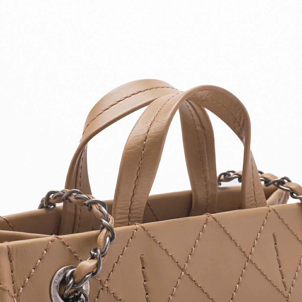 Elevate your style with the CHANEL Matelasse Wild Stitch Handbag in luxurious calfskin beige, featuring elegant silver fittings. This exquisite shoulder bag is a perfect blend of sophistication and practical design, making it an essential addition to any fashion-forward woman’s collection.