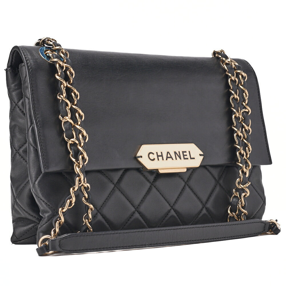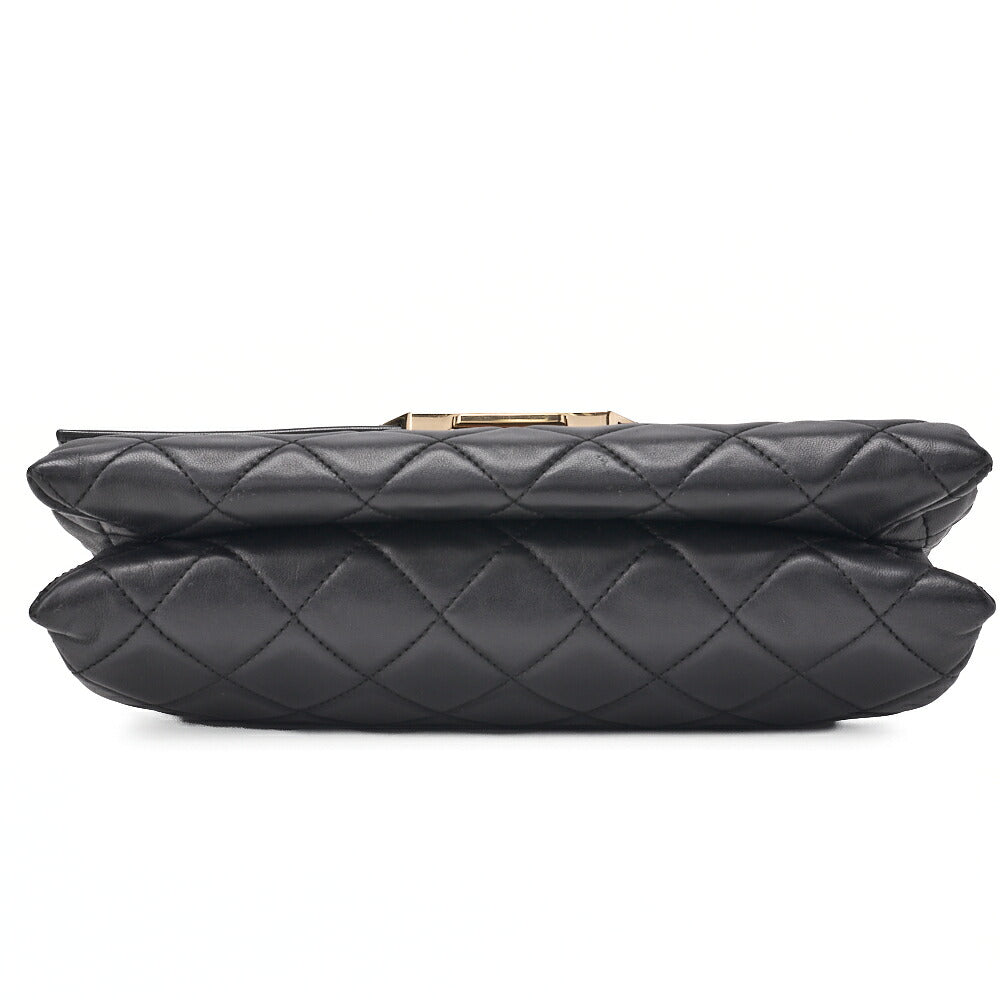 Pre-Owned Matelassé Push Lock Logo Chain Shoulder Lambskin Black Gold-Tone Hardware, Pre-Owned