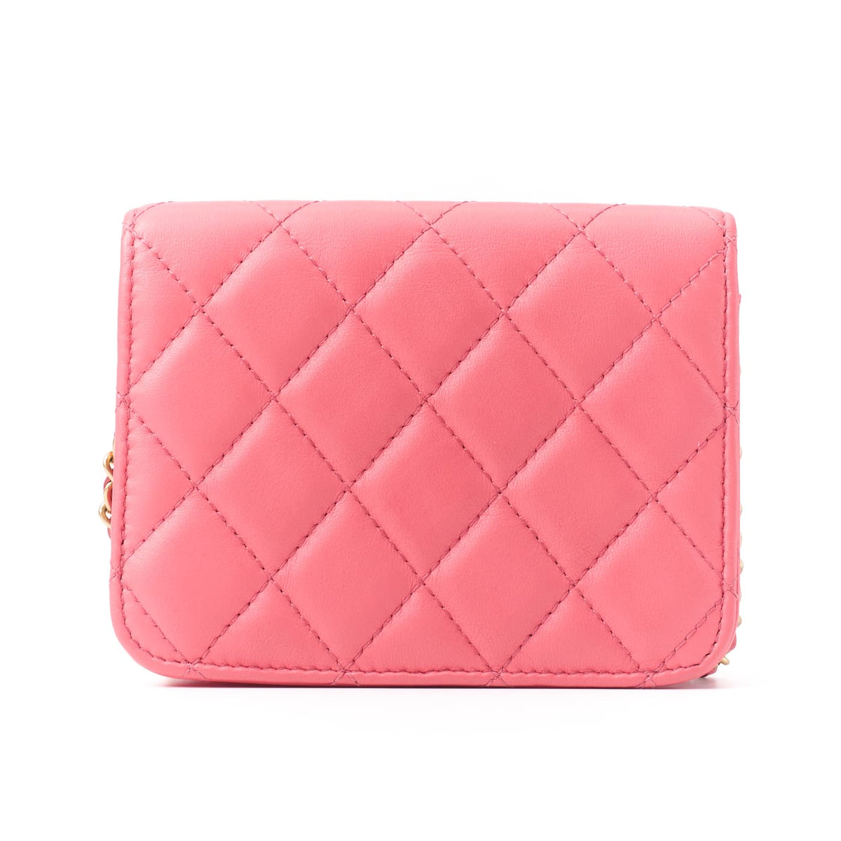 Pre-Owned Mini Shoulder Bag, Matelasse, Chain Shoulder, Lambskin, Pink, Gold-Tone Hardware, Pre-Owned