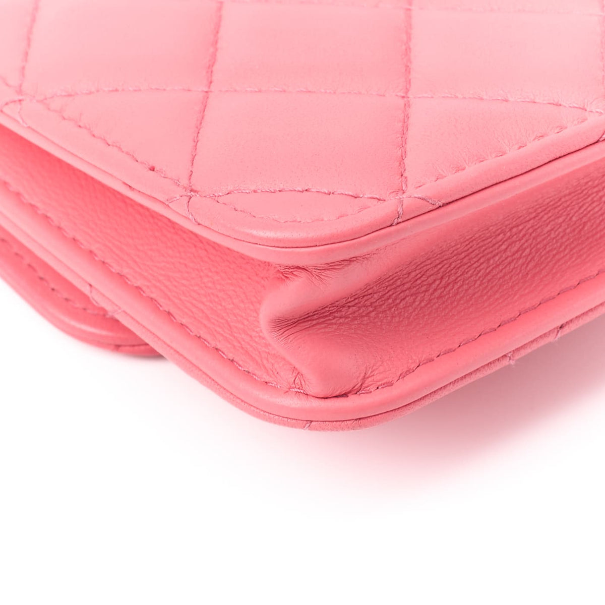 Elevate your style with the exquisite CHANEL Mini Matelasse Chain Shoulder Bag, crafted from luxurious lambskin in a stunning pink hue. This elegant mini shoulder bag offers the perfect blend of sophistication and functionality for the modern woman.