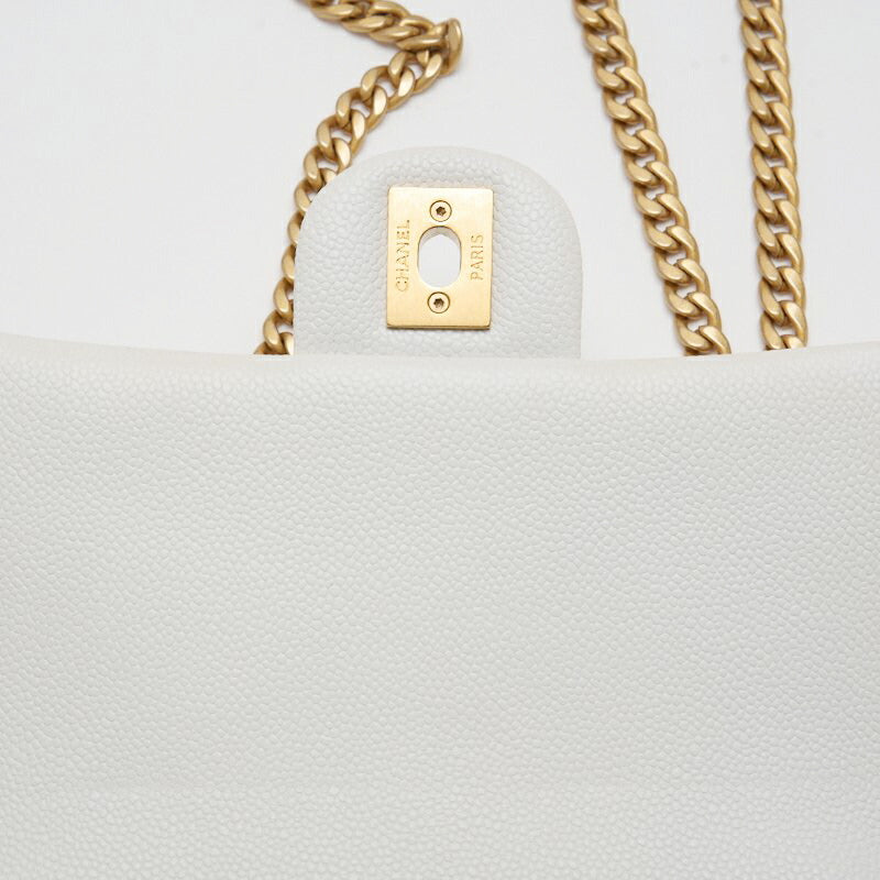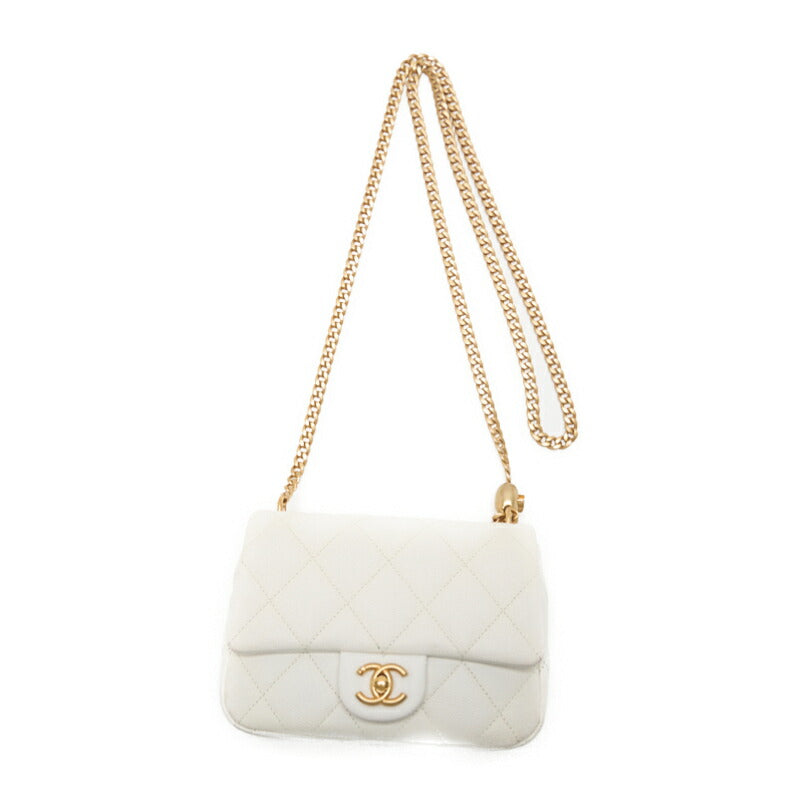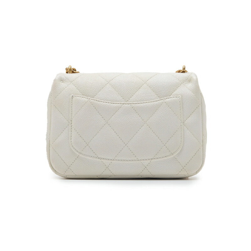 Pre-Owned Mini Shoulder Bag, Matelasse, Turn Lock, Caviar Skin, White, Gold-Tone Hardware, Pre-Owned