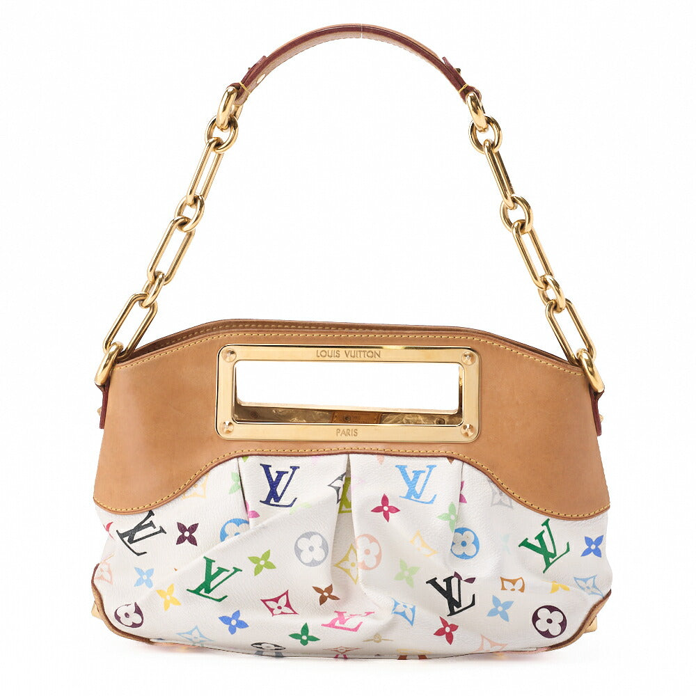 Introducing the LOUIS VUITTON Monogram Multicolor Judy PM 2WAY Handbag in a stunning white finish accented with elegant gold fittings. This exquisite piece is not just a handbag; it is a versatile fashion statement that elevates any outfit with its vibrant multicolor monogram design.