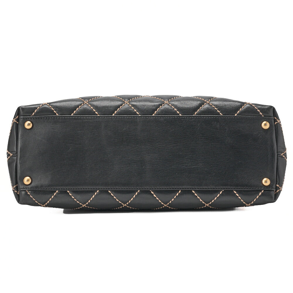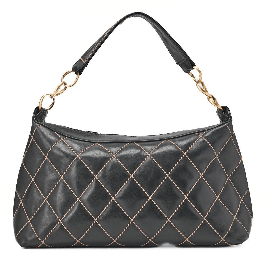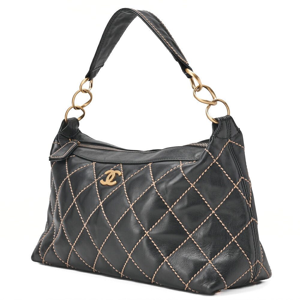 Pre-Owned Shoulder Bag, Coco Mark Wild Stitch, Calfskin, Black, Gold-Tone Hardware, Pre-Owned