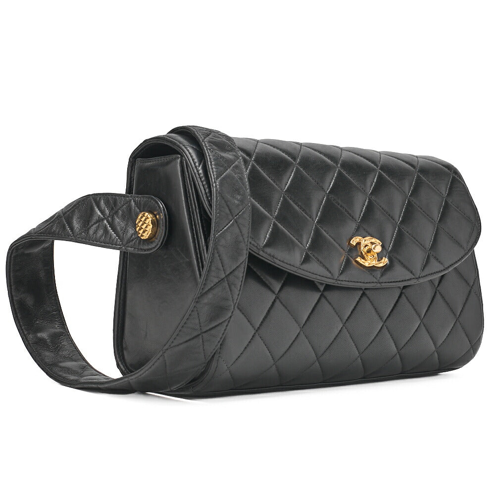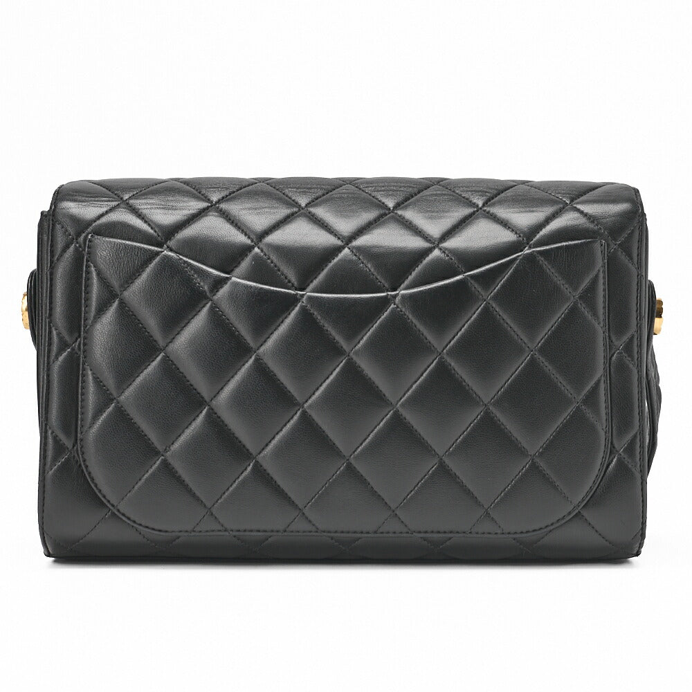 Pre-Owned One Shoulder Bag Coco Mark Round Flap Lambskin Black Gold-Tone Hardware, Pre-Owned]