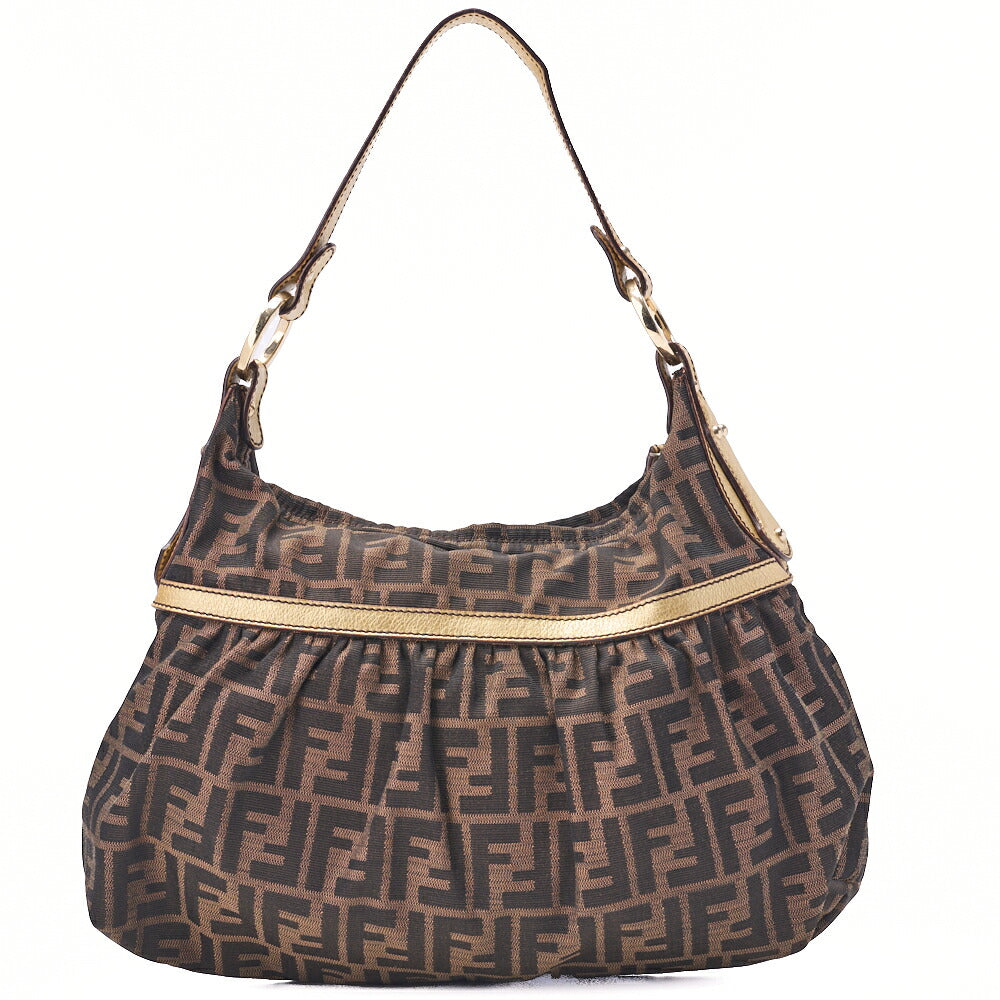 Pre-Owned Shoulder Bag, Zucca Canvas Leather, Brown, Gold-Tone Hardware, Pre-Owned