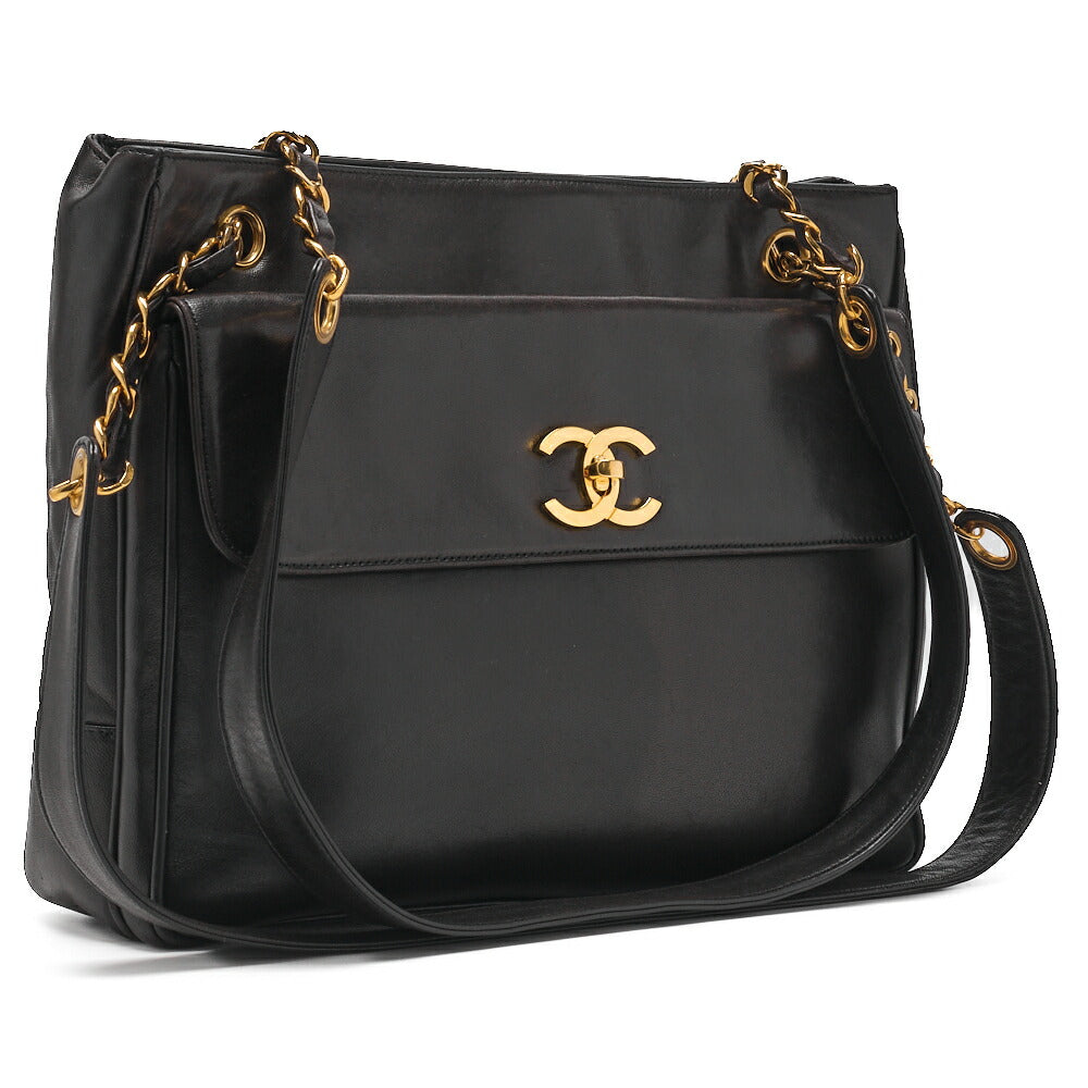 Pre-Owned Shoulder Bag, Outside Flap, Double Chain Shoulder, Lambskin, Black, Gold-Tone Hardware, Pre-Owned